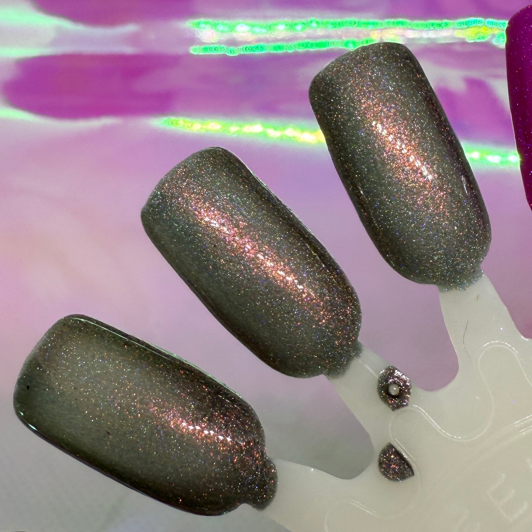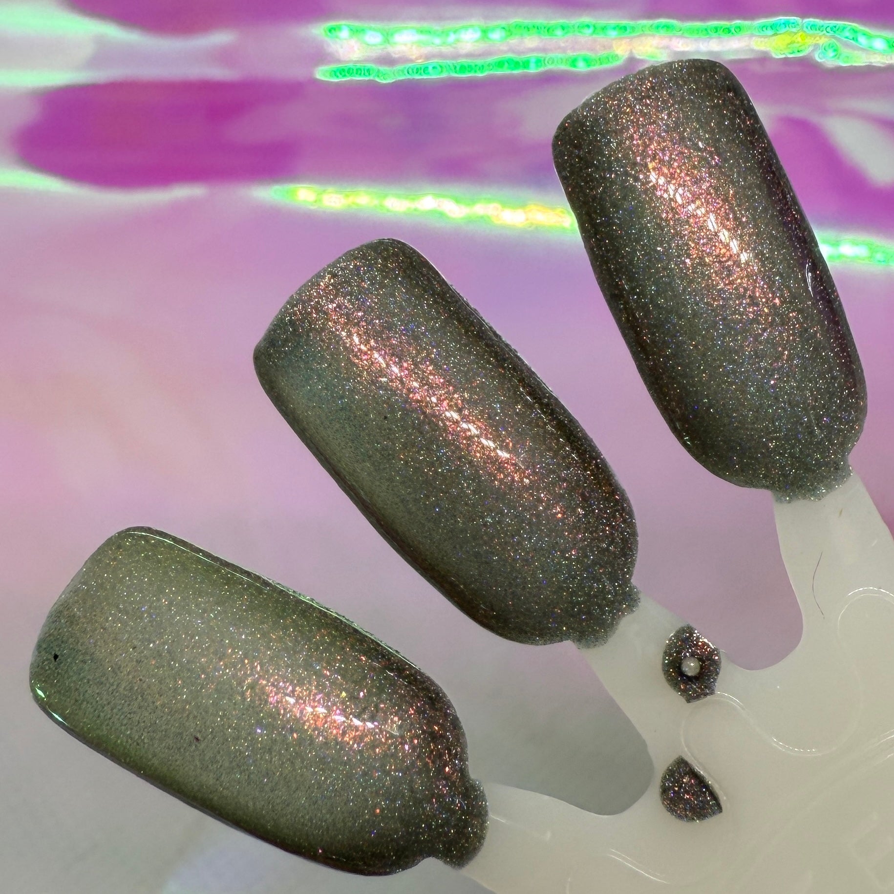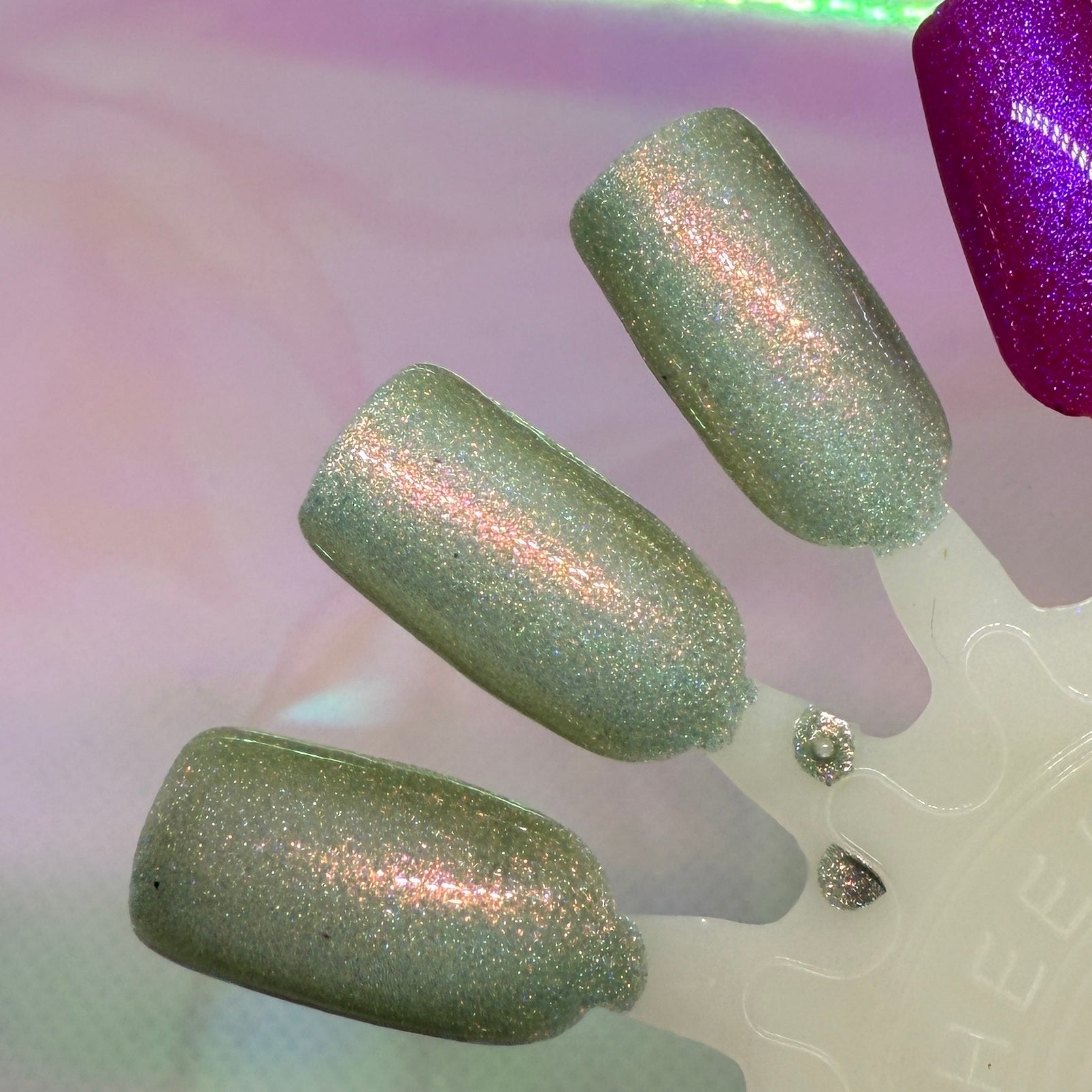 Spot the Pickle- dark green to olive green thermal with intense linear holo and red to orange to gold shifting micro flakie shimmer