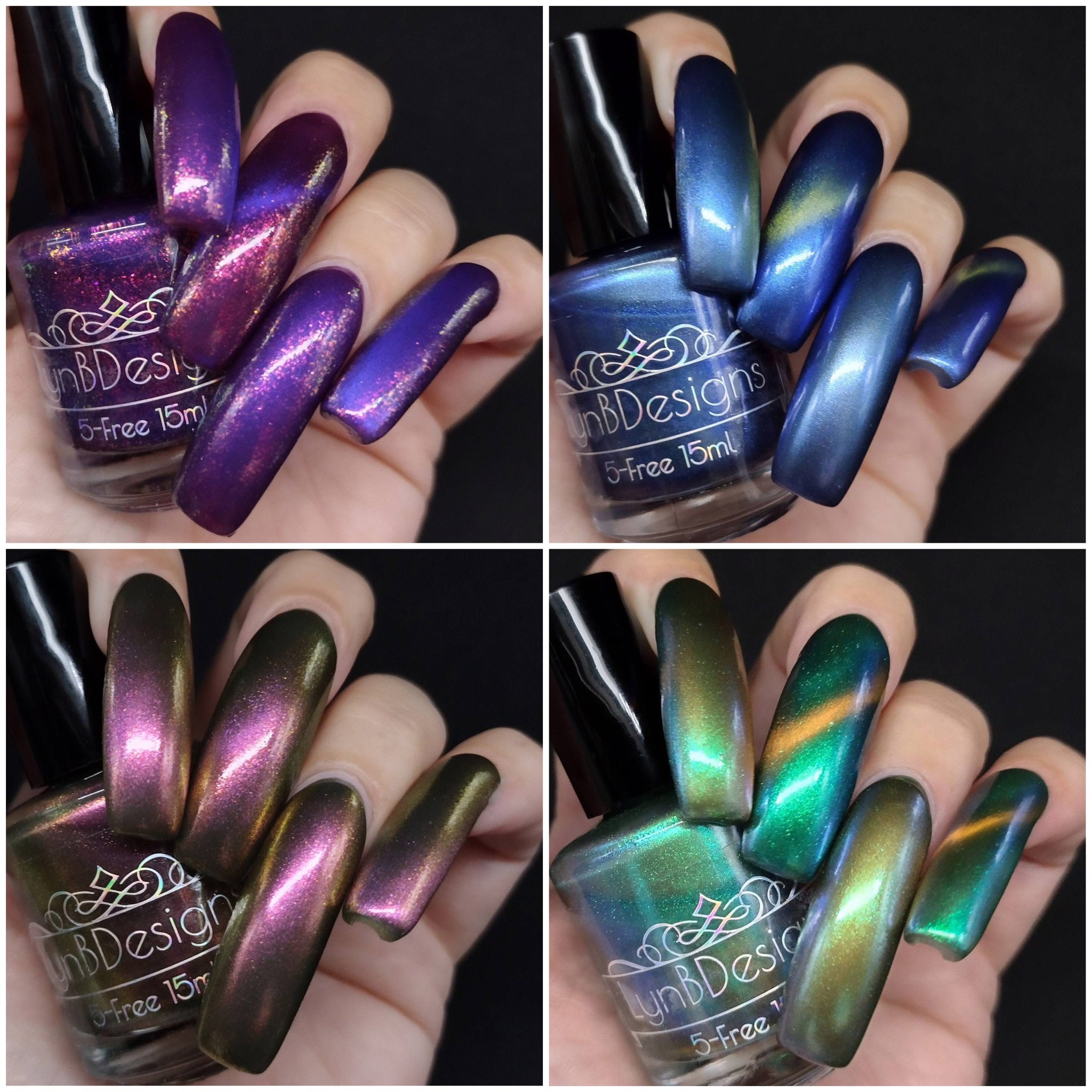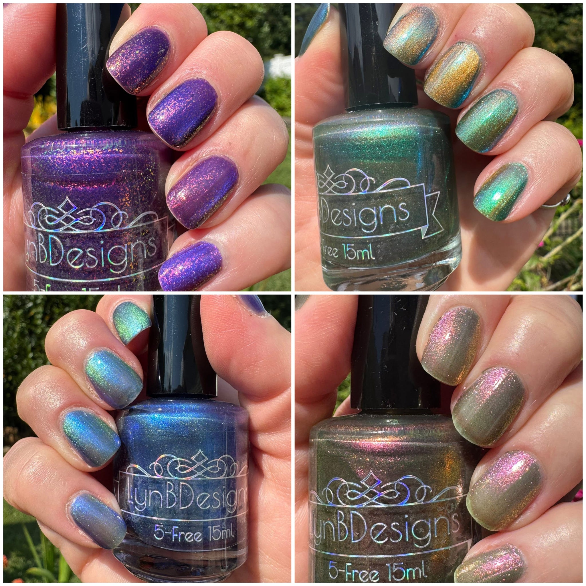 Falling for Hue- plum colored base with purple magnetic pull and a rainbow of micro flakies
