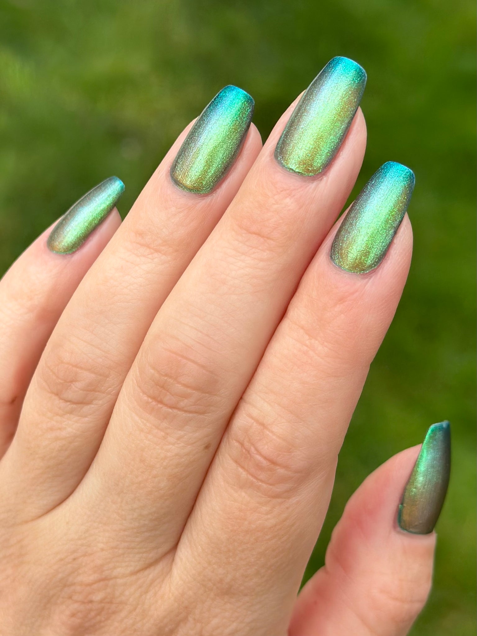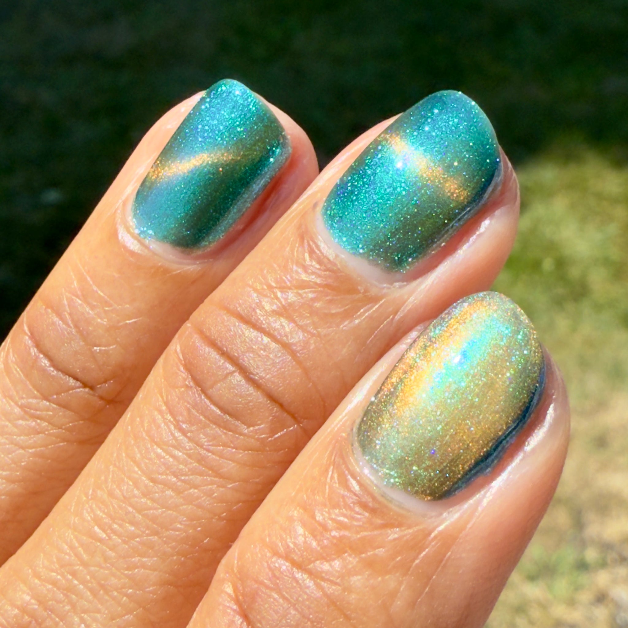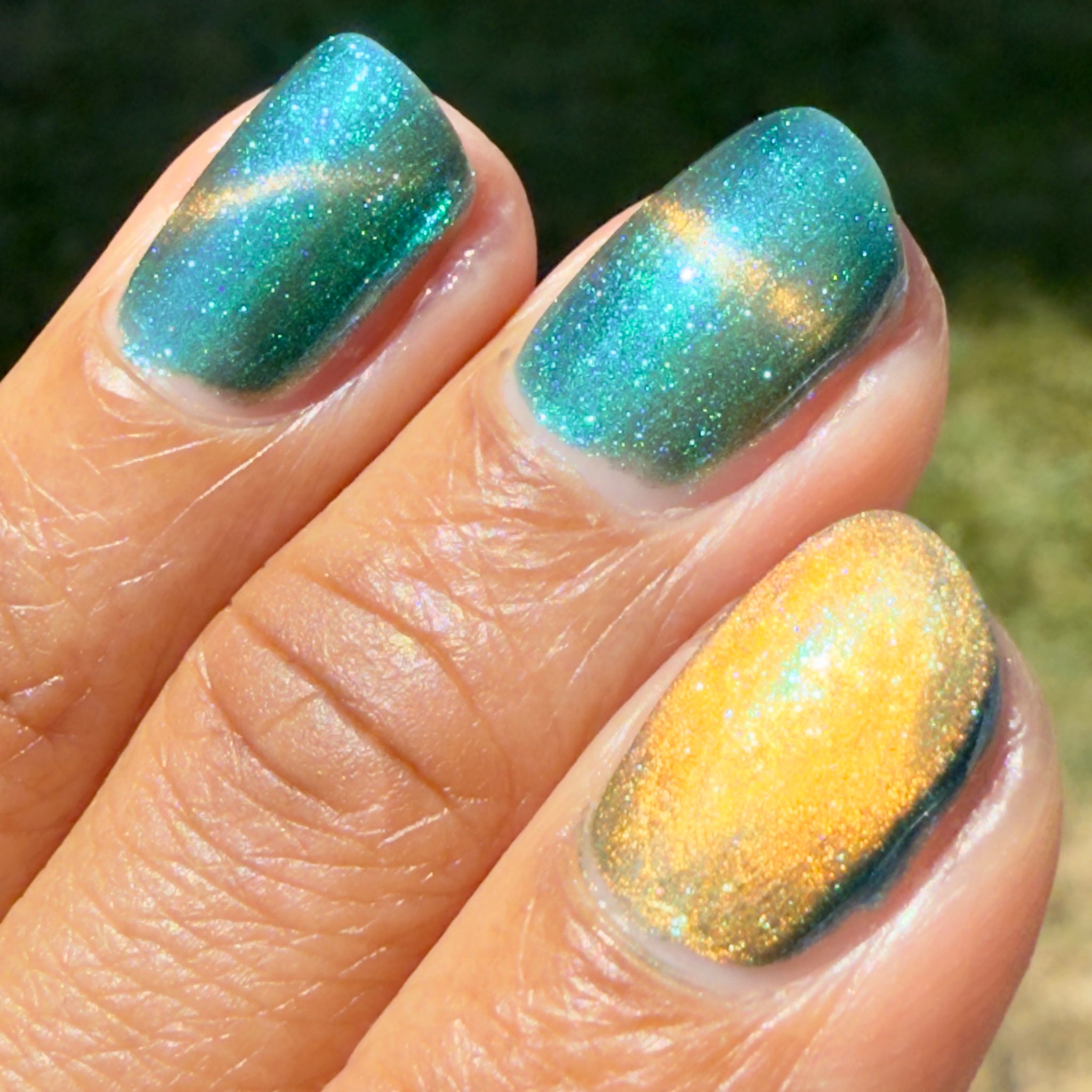 You Autumn Know- deep teal base with copper magnetic pull and green to blue to indigo shifting shimmer
