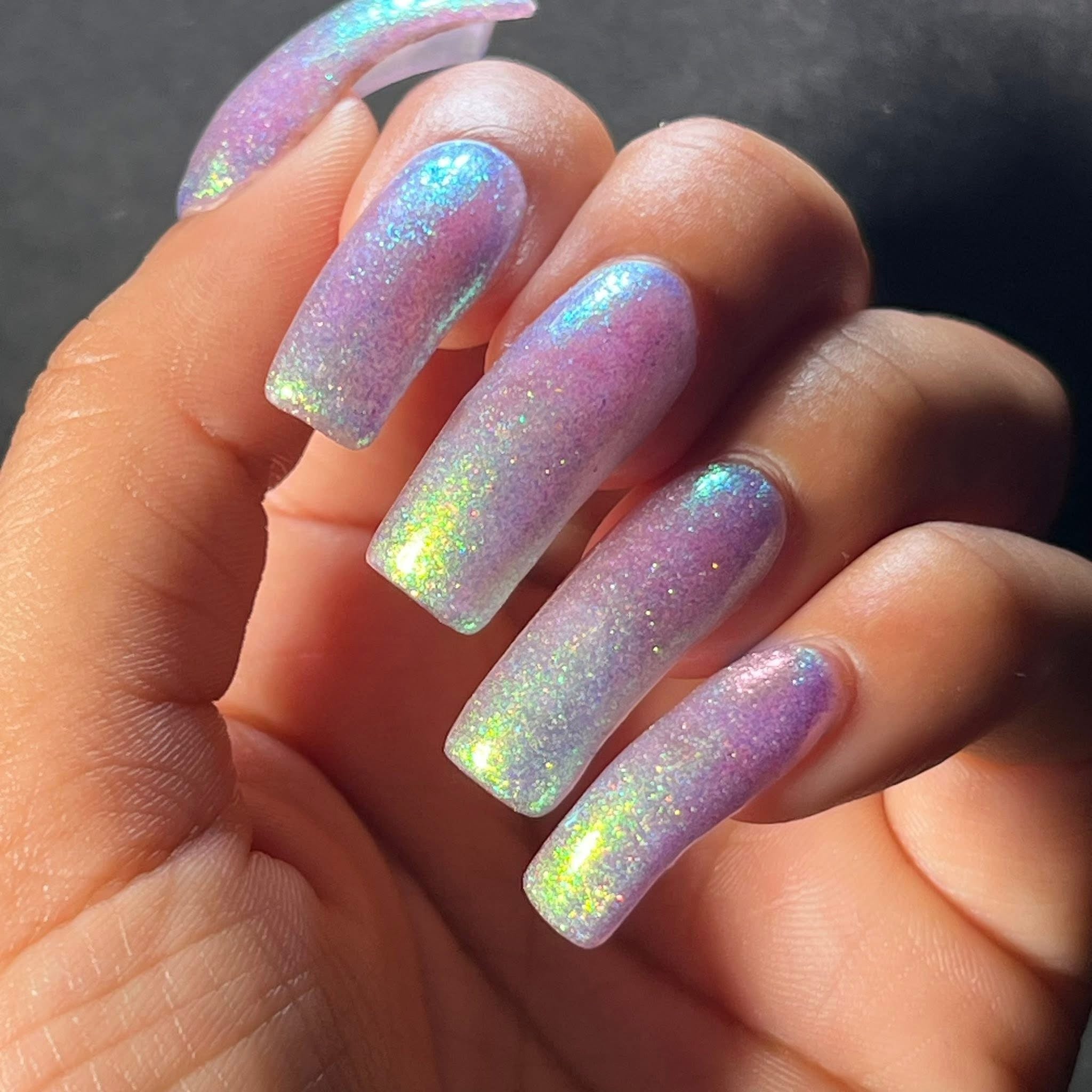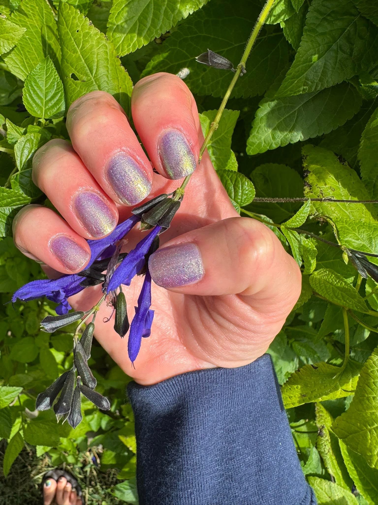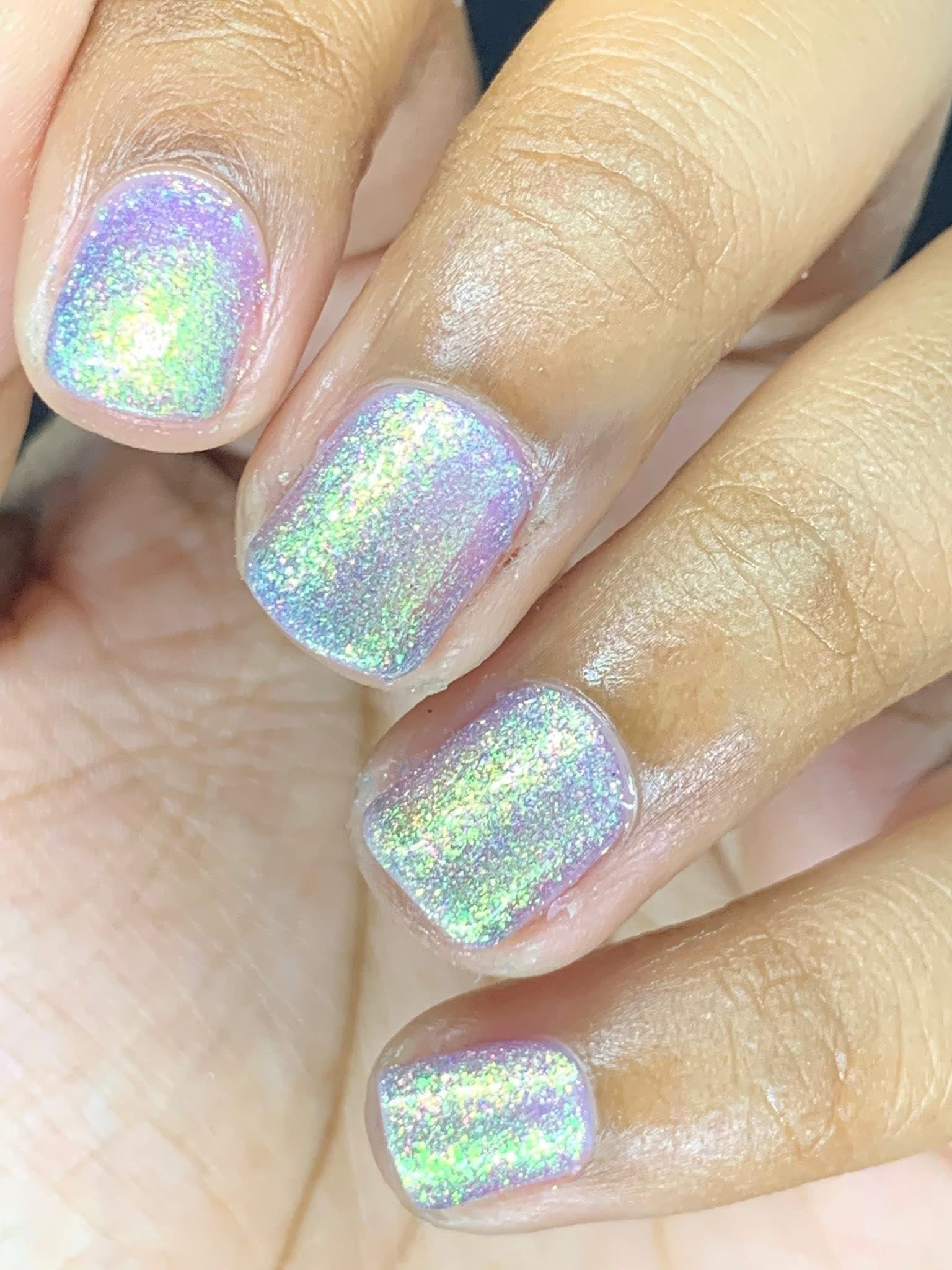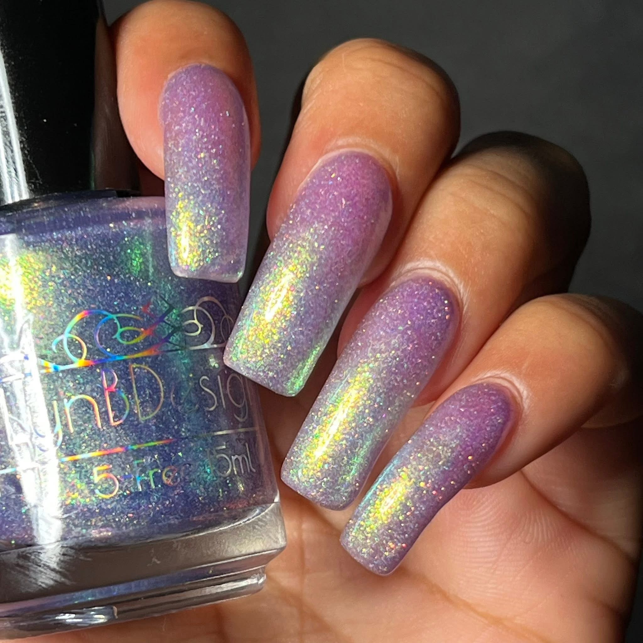Lovin, Touchin, Squeezin Some Butter- violet base filled with peach to green to blue shifting micro flakies and scattered holo sparkle