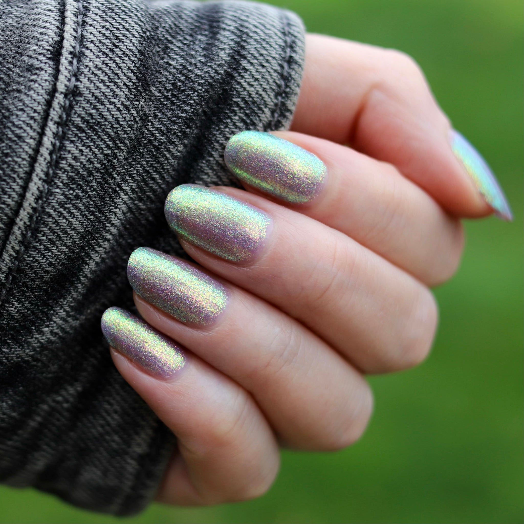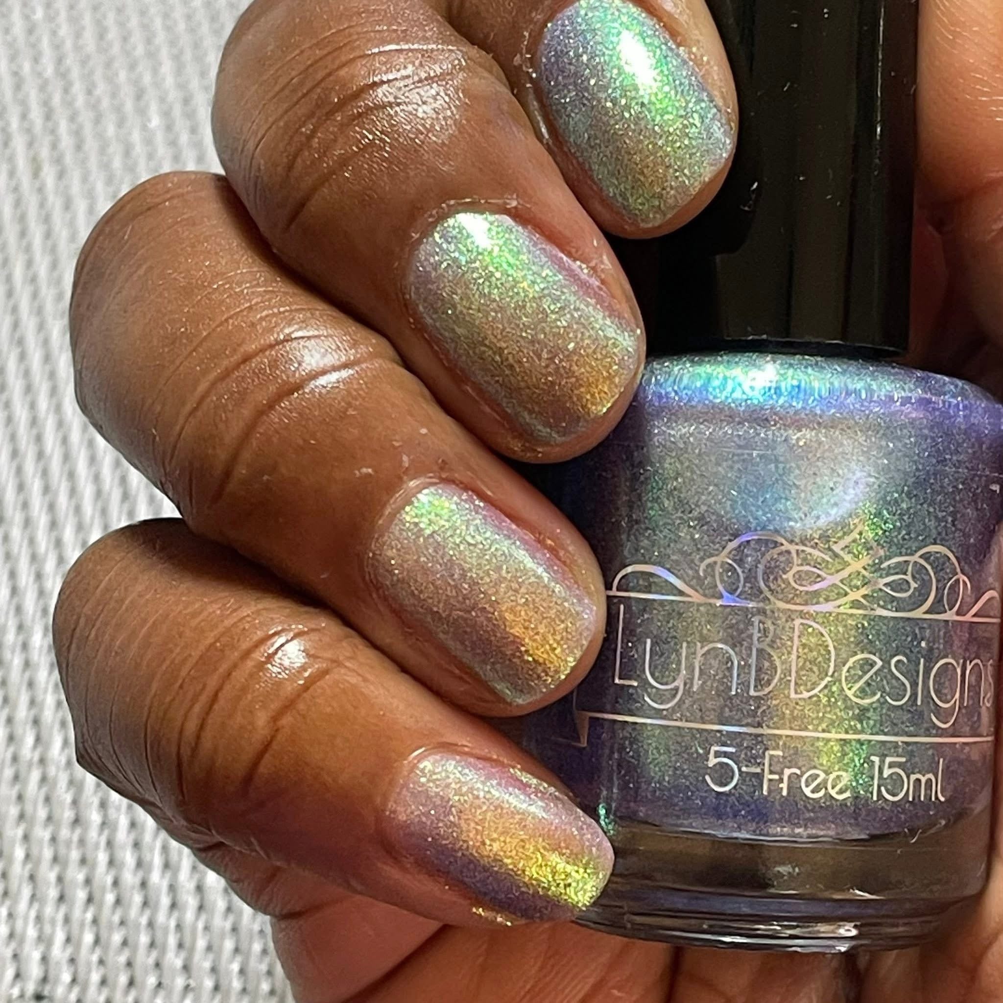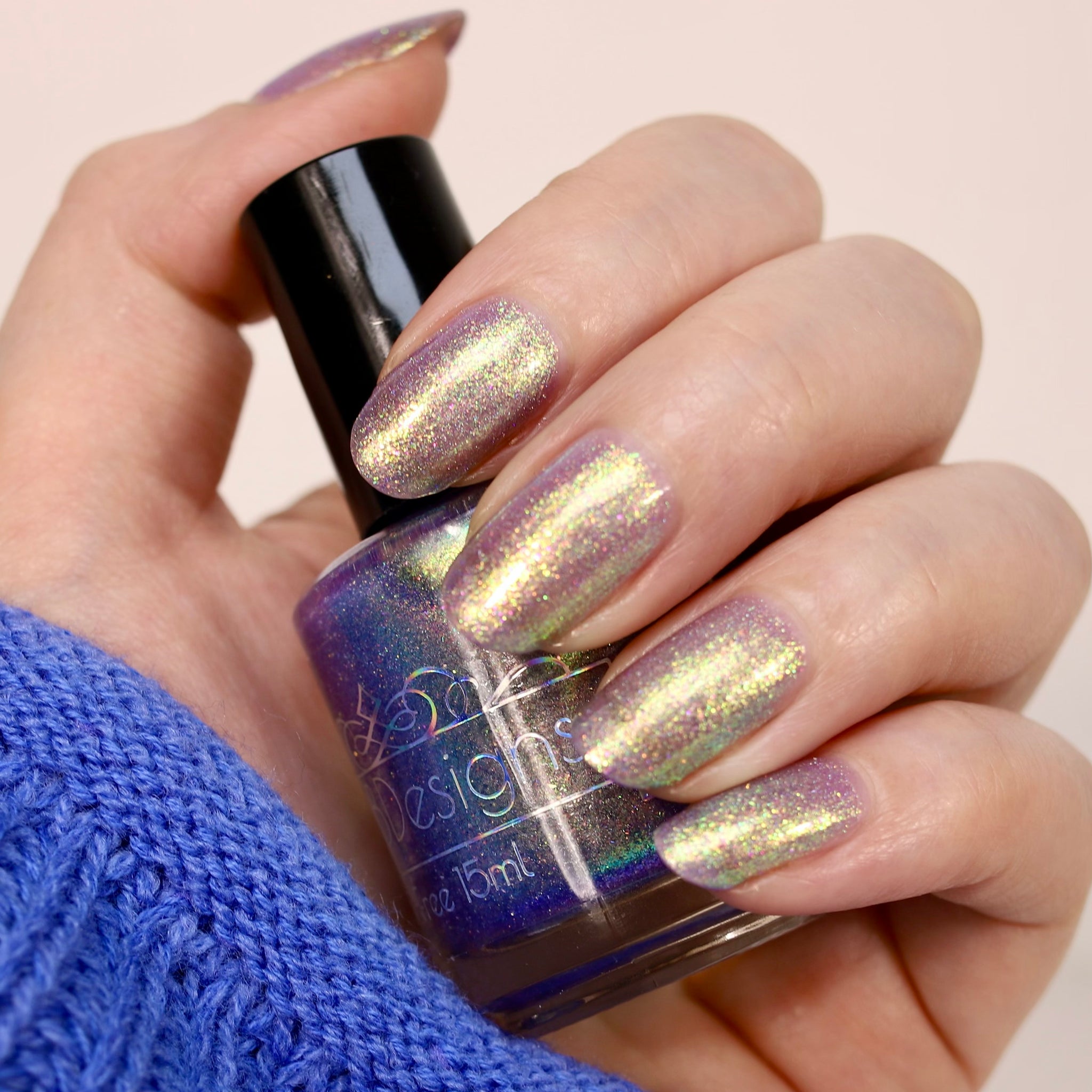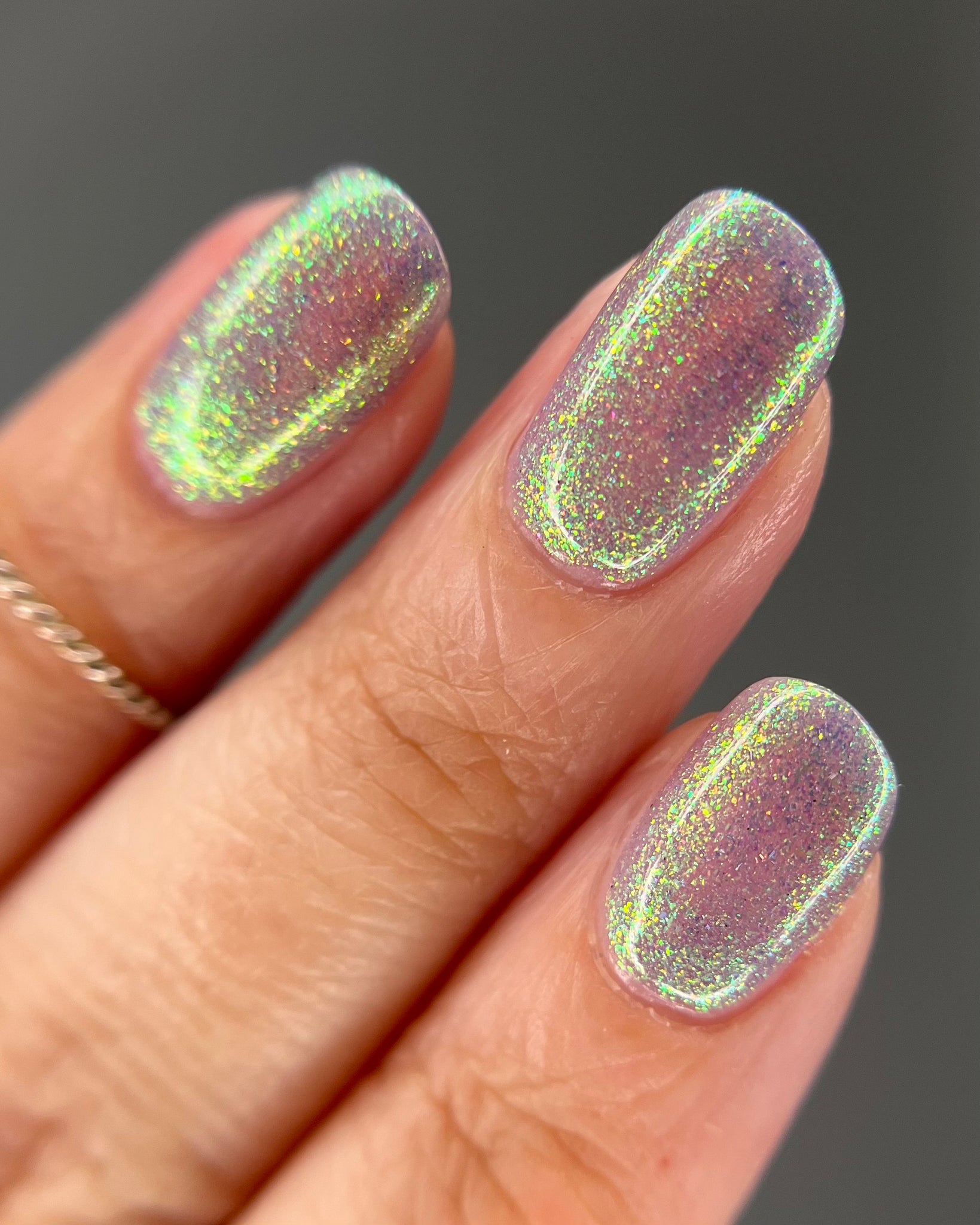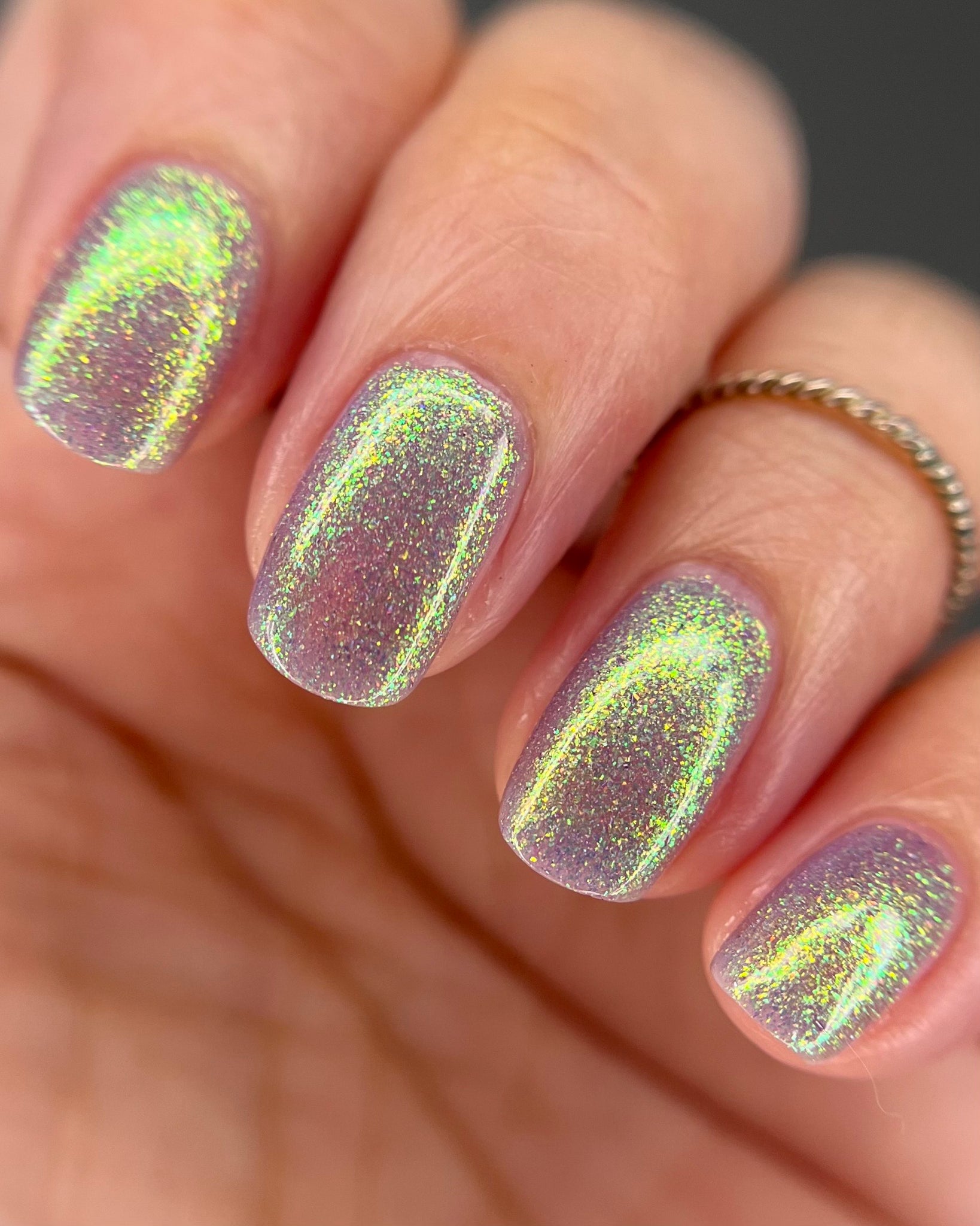 Lovin, Touchin, Squeezin Some Butter- violet base filled with peach to green to blue shifting micro flakies and scattered holo sparkle