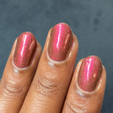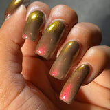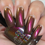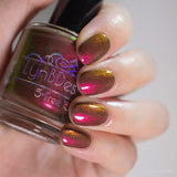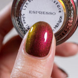 Espresso- dark cool toned brown base witu pink to orange shifting shimmer