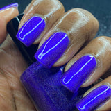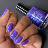 Gemini (the twins)- blurple base with intense blue to purple shifting shimmer and added holo sparkle