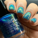 Scorpio (The Scorpion)- deep blue with micro flakie shimmer with pink to orange to green shifts and holo flakies