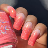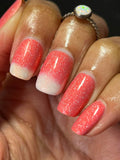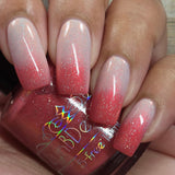 Vermillion- bright warm red to white thermal base with red to orange to gold shifting shimmer