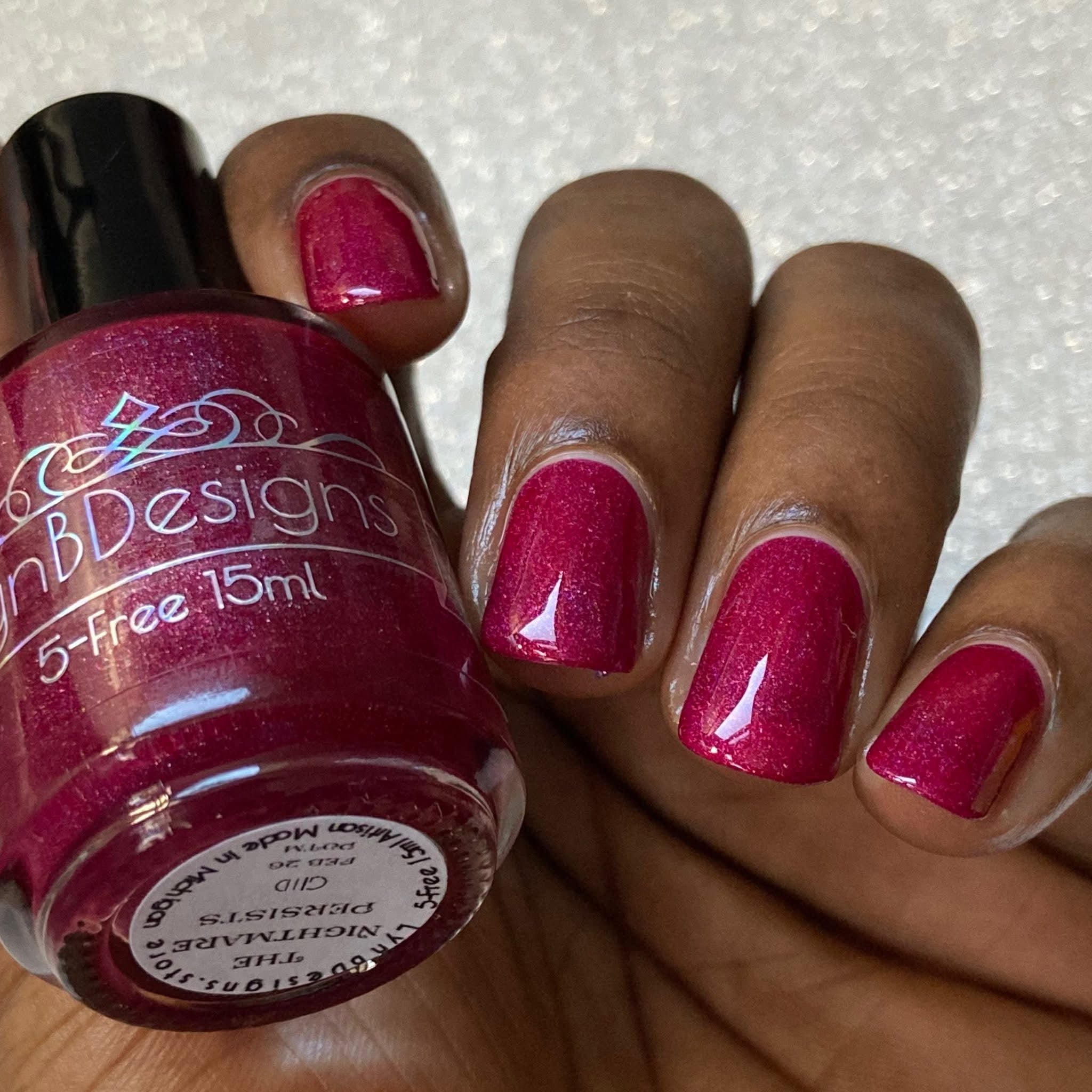 The Nightmare Persists- dark magenta linear holo with pink glow in the dark
