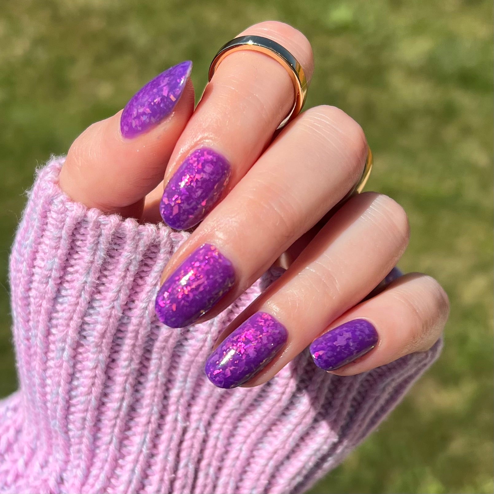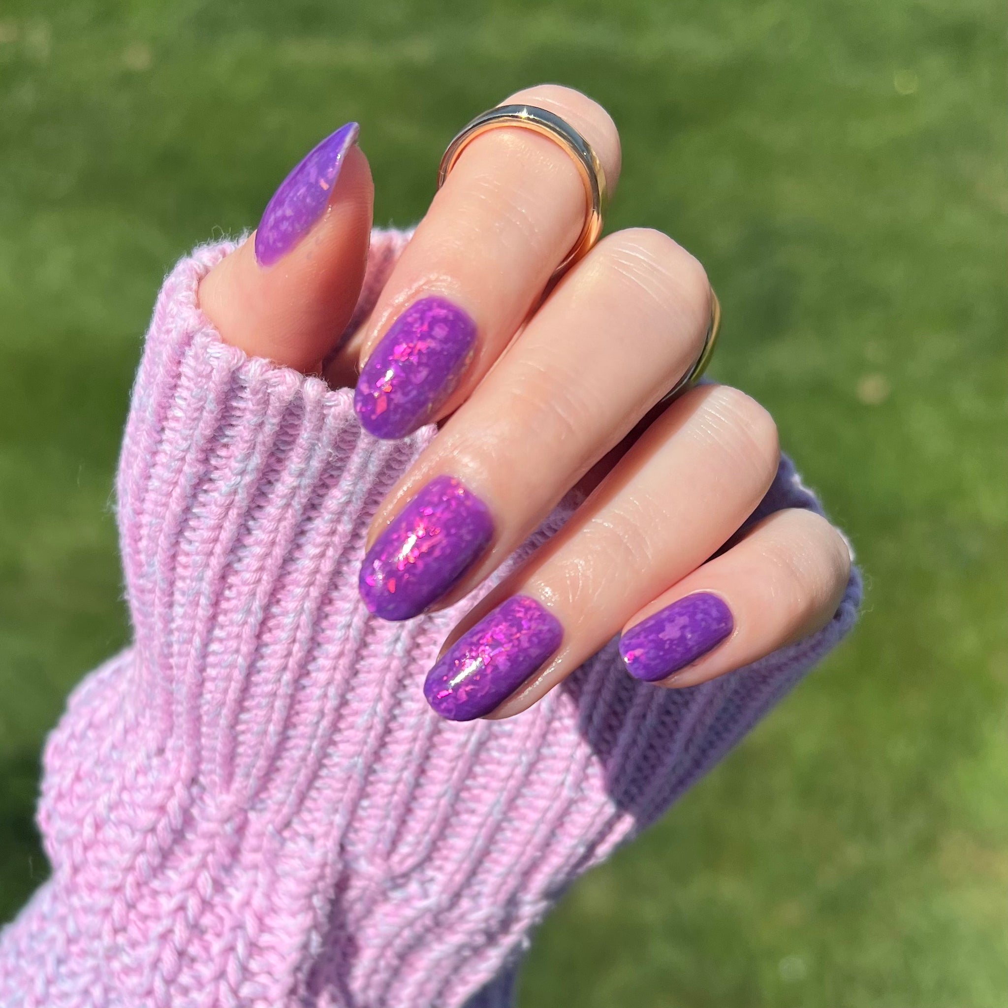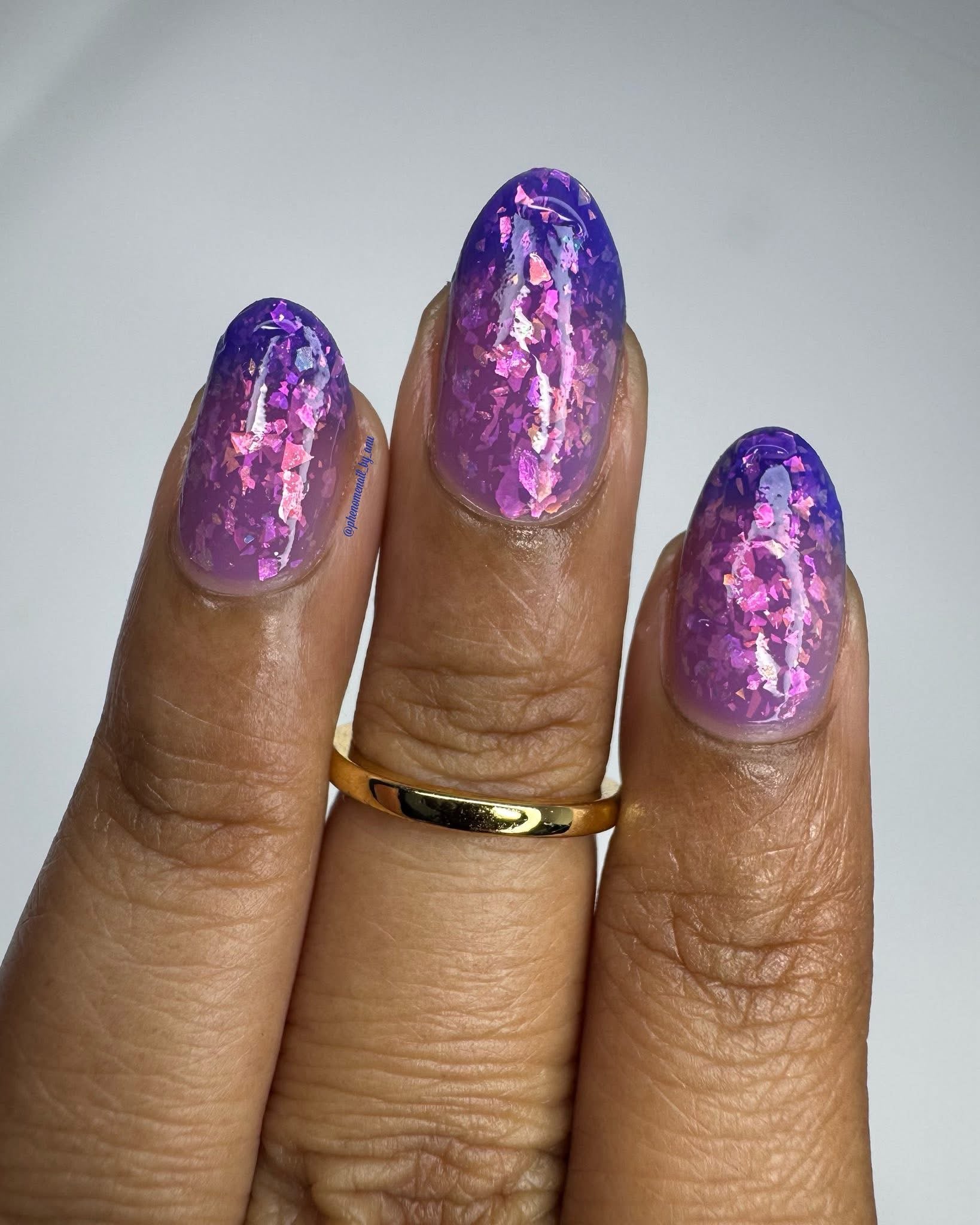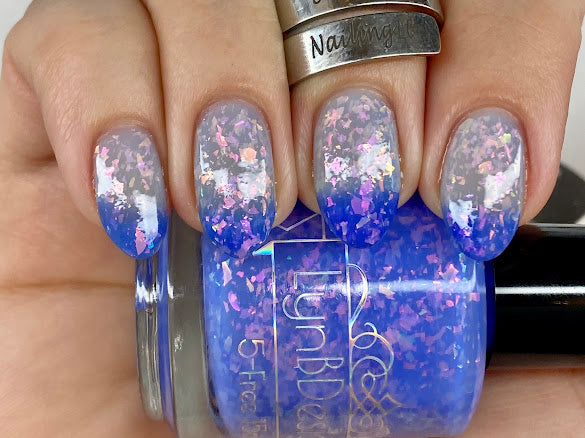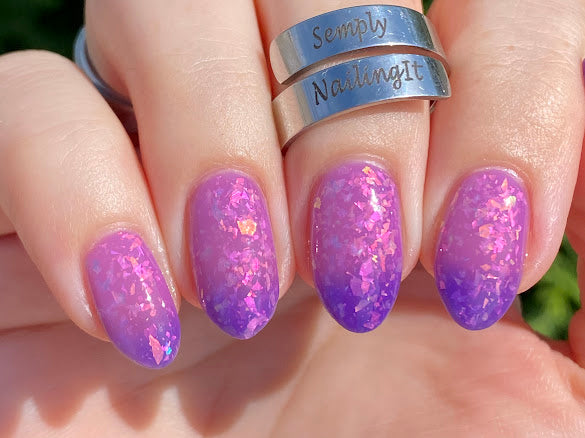 Butterfly Pea Flower Lemonade- blue to clear thermal indoors and purple to pink solar in the sun with pink to green shifting flakies