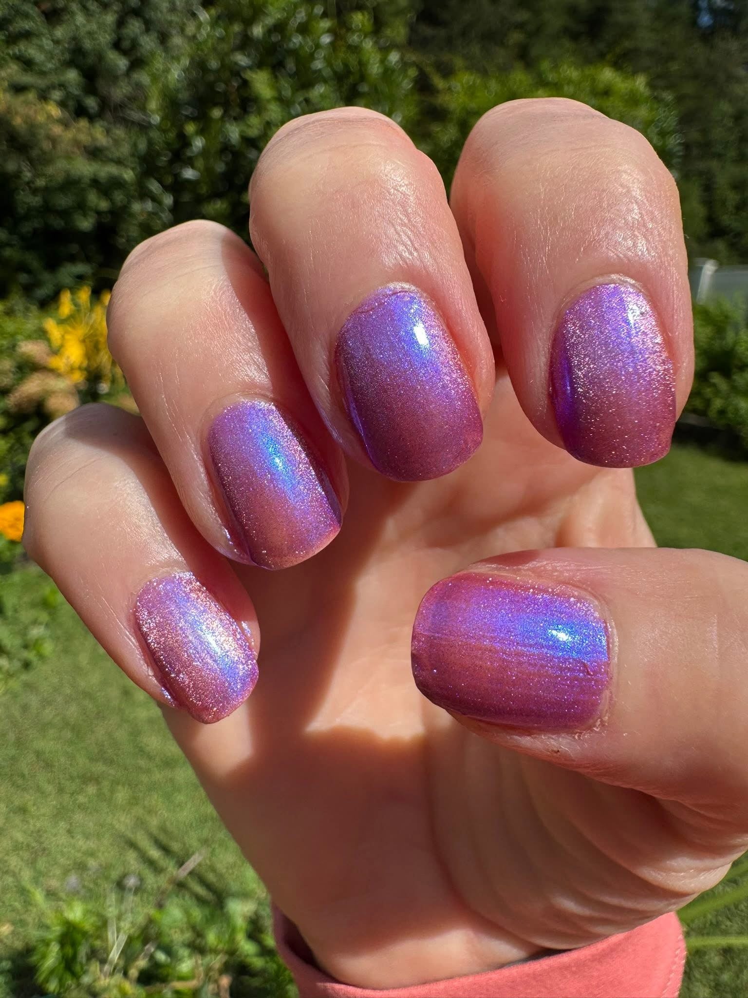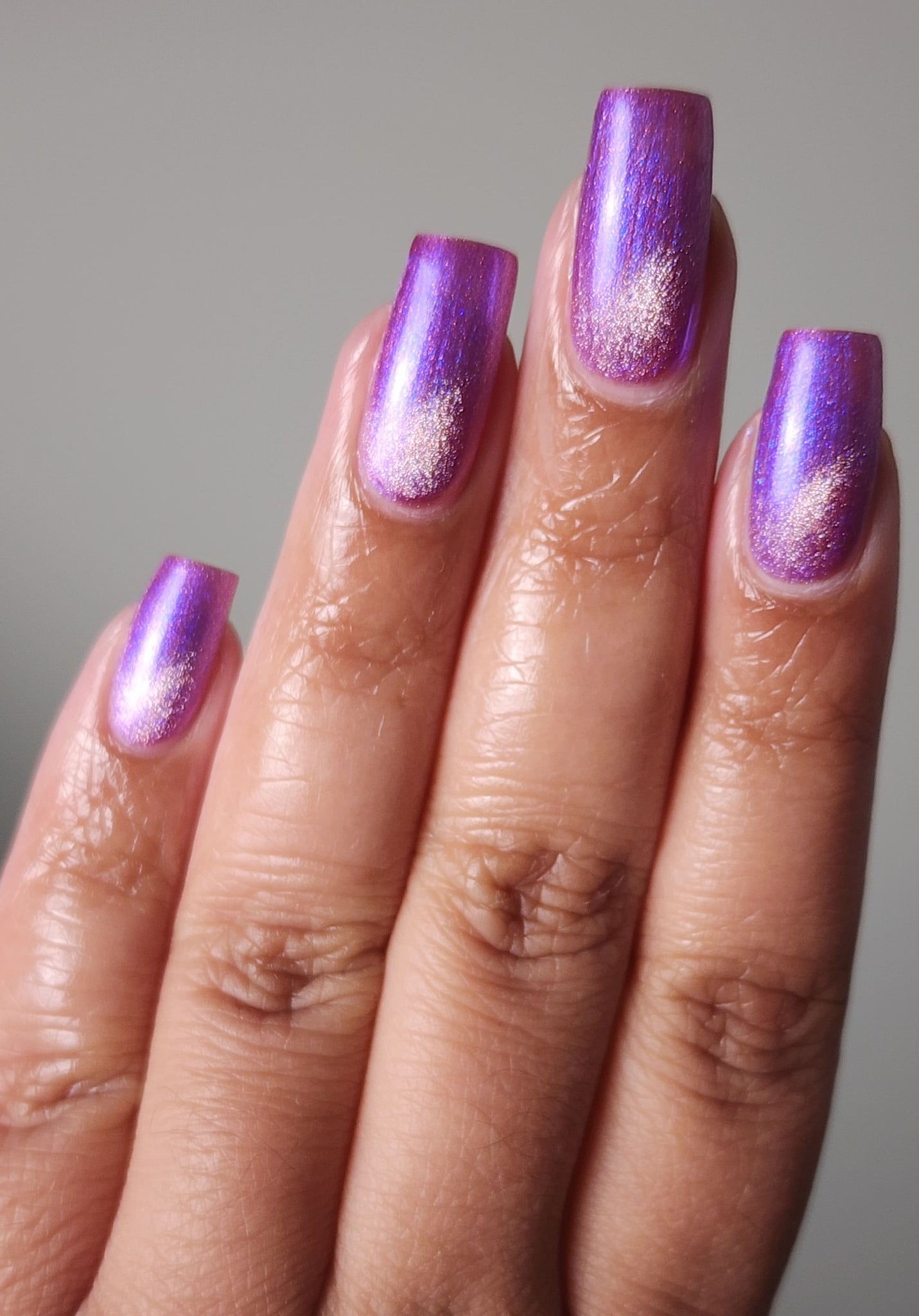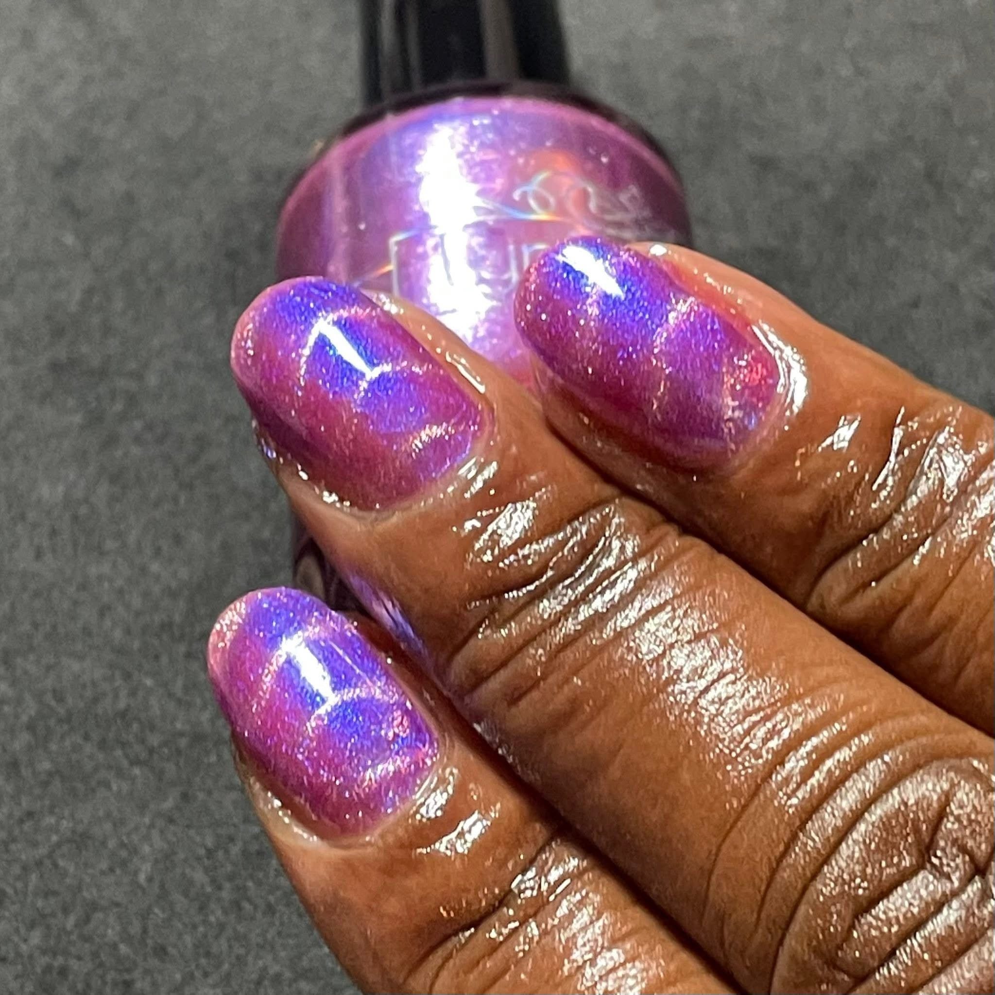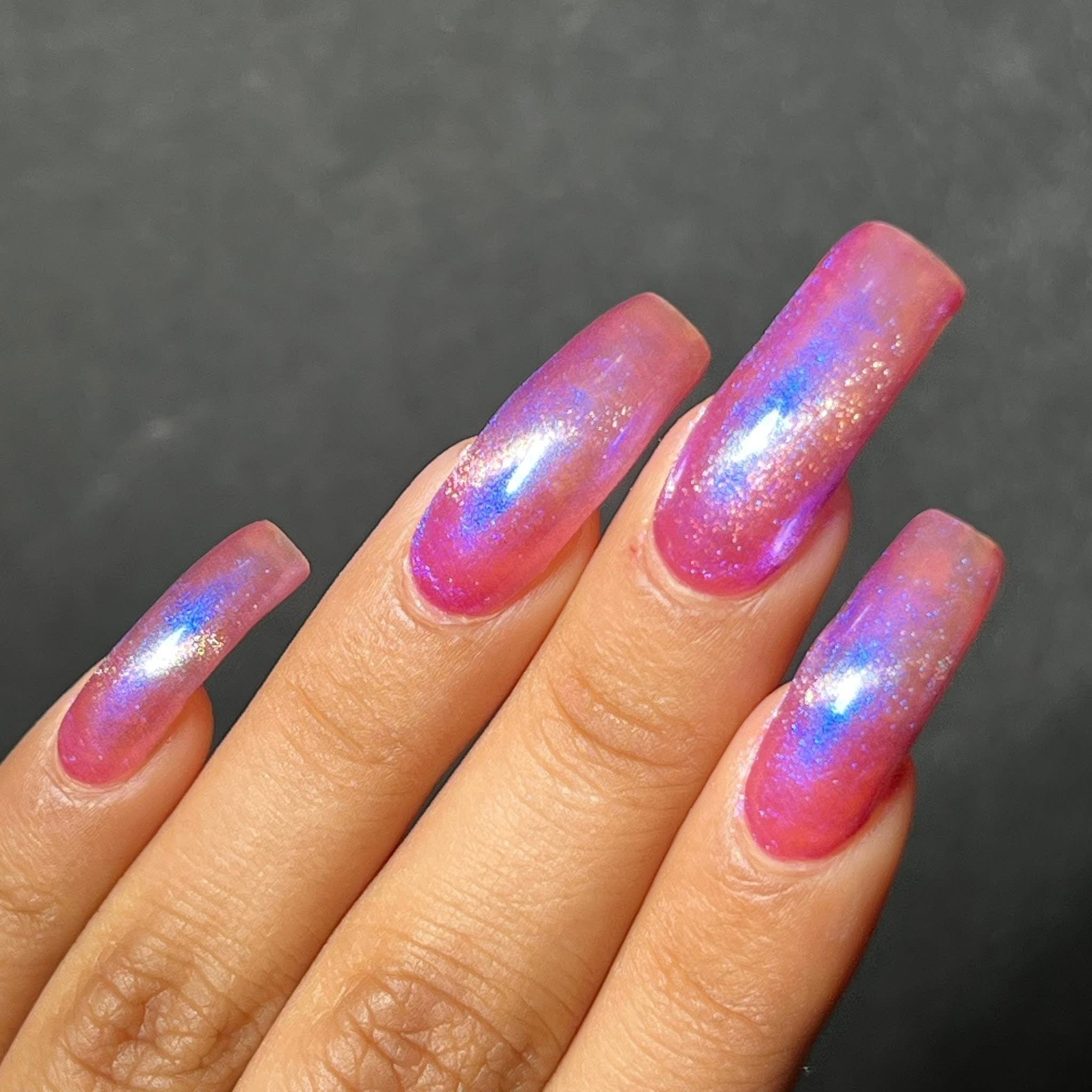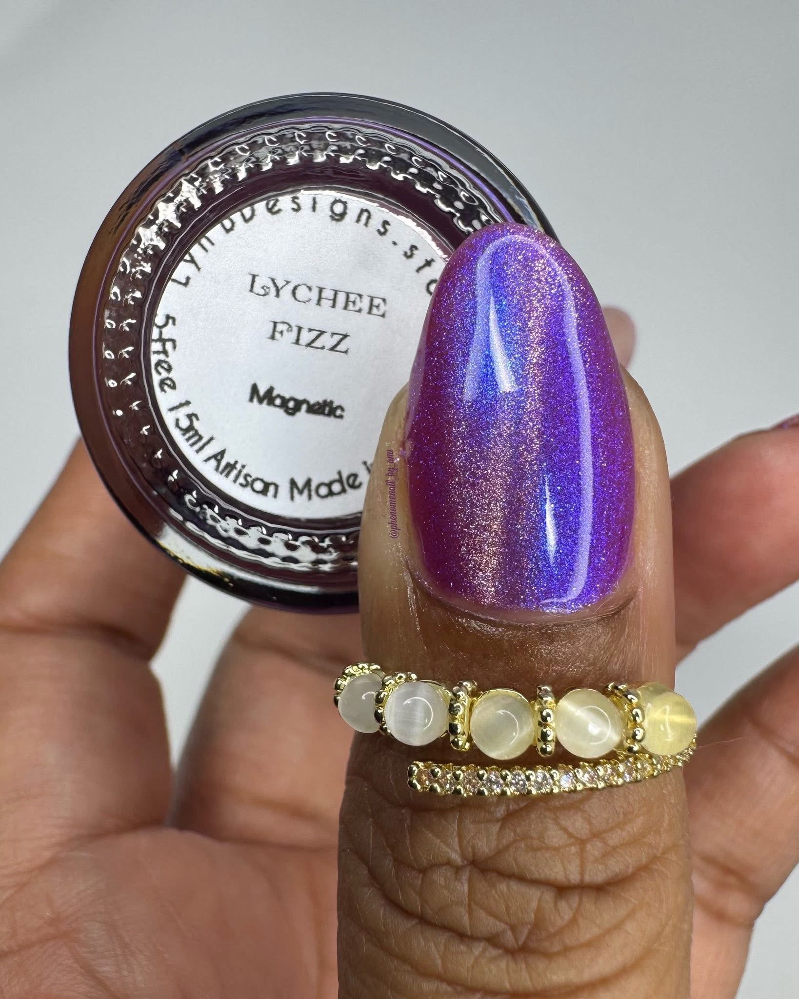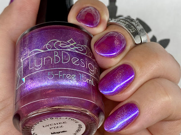 Lychee Fizz- warm berry base with blue to purple shifting shimmer and added lavender magnetic pull