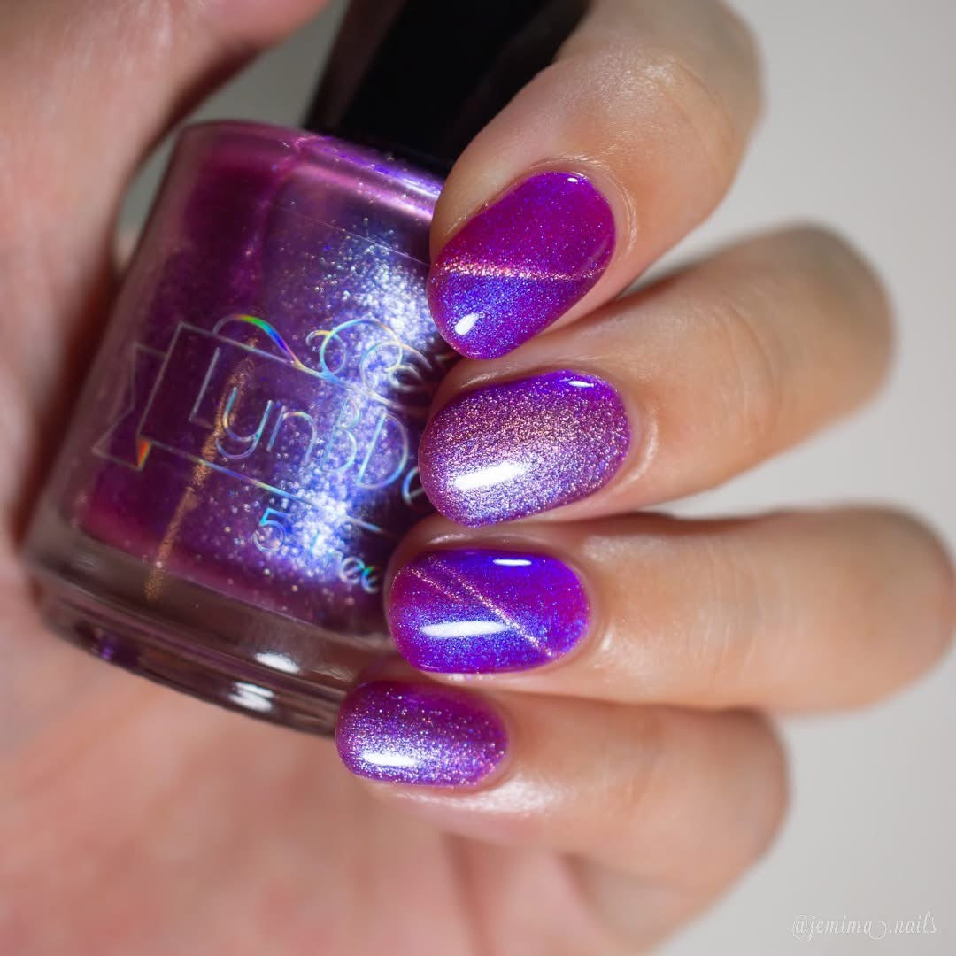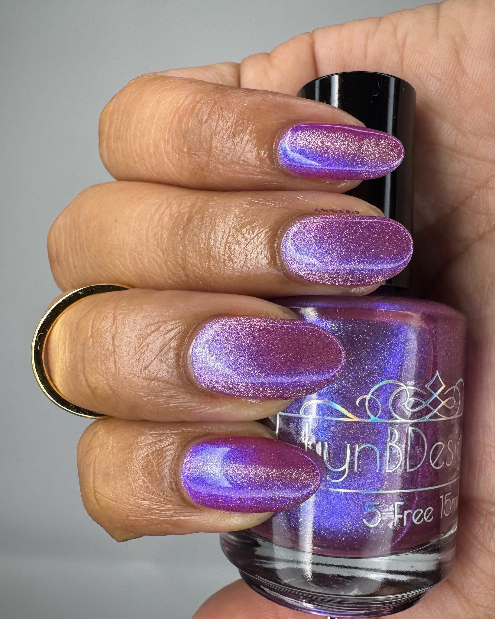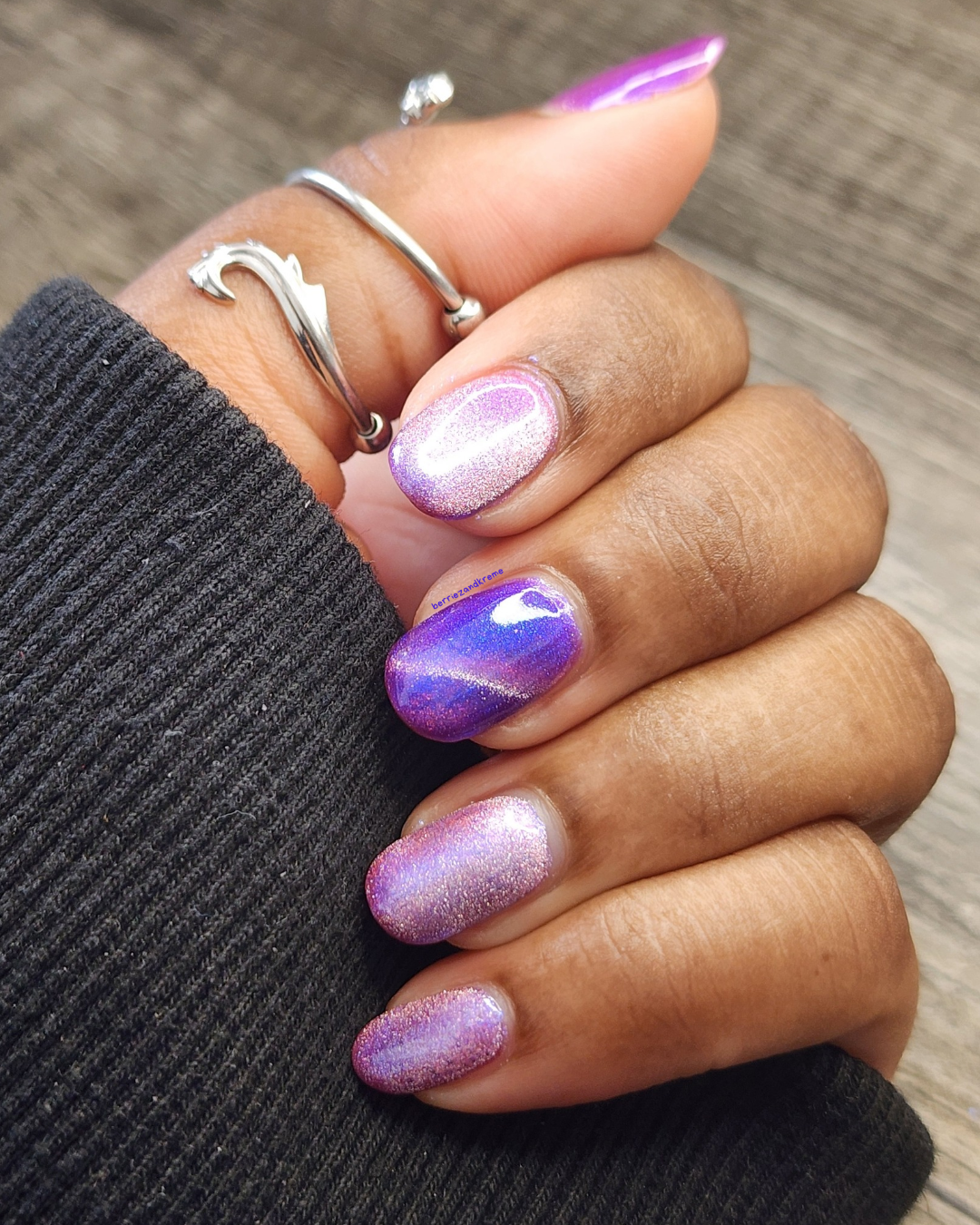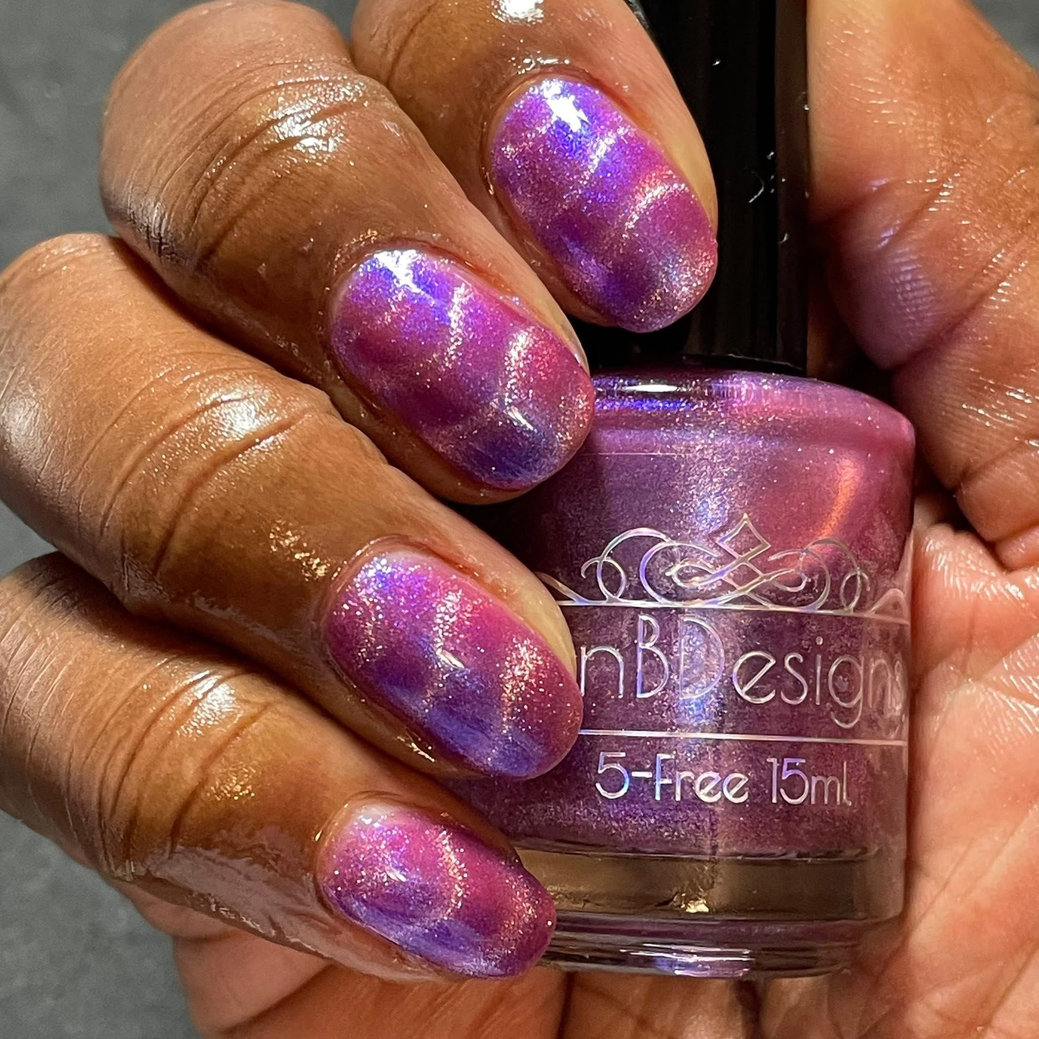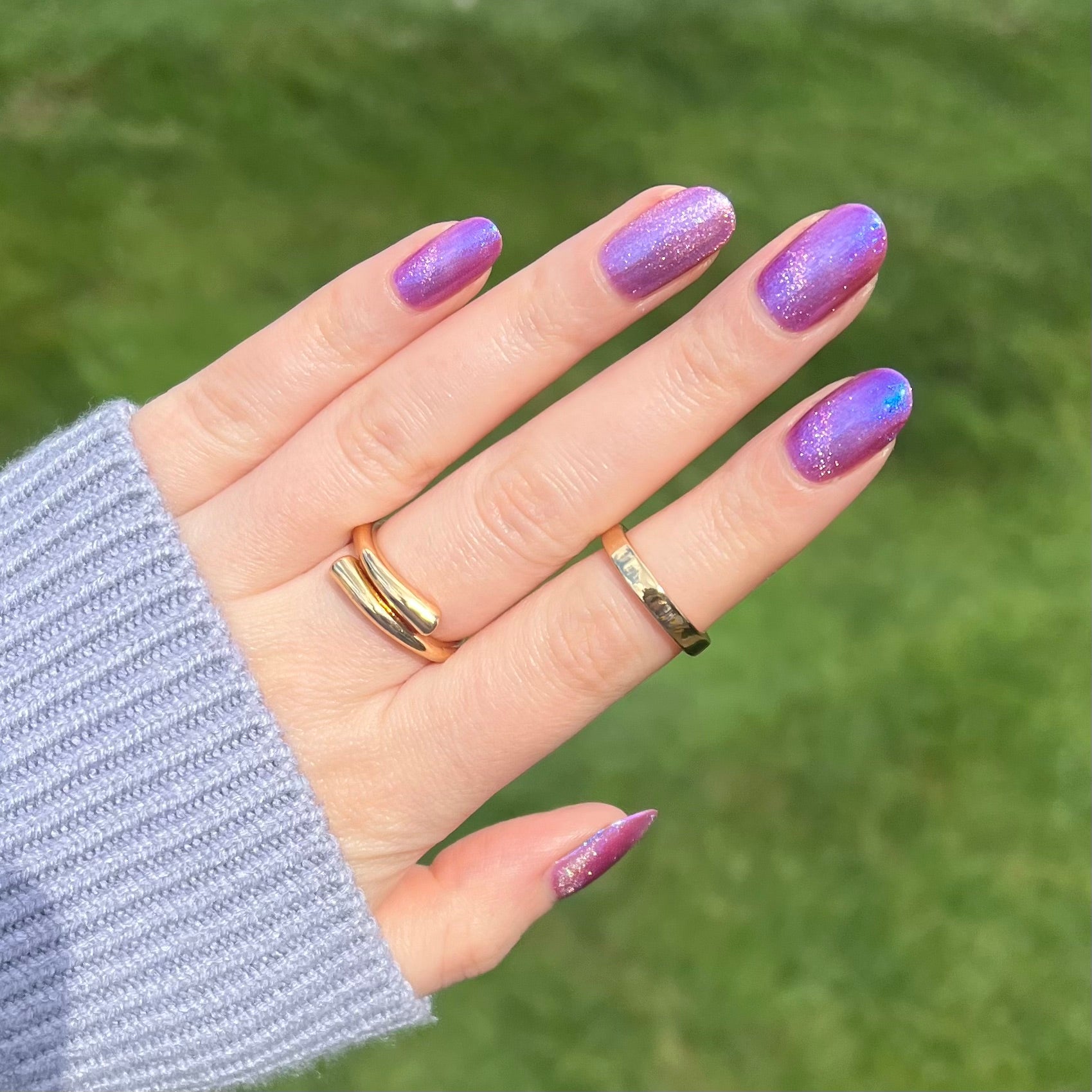 Lychee Fizz- warm berry base with blue to purple shifting shimmer and added lavender magnetic pull