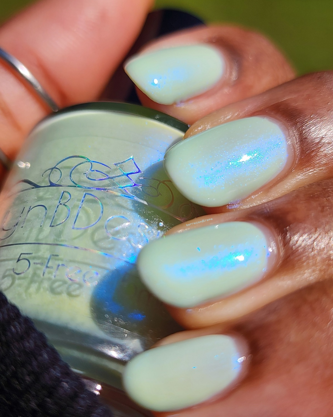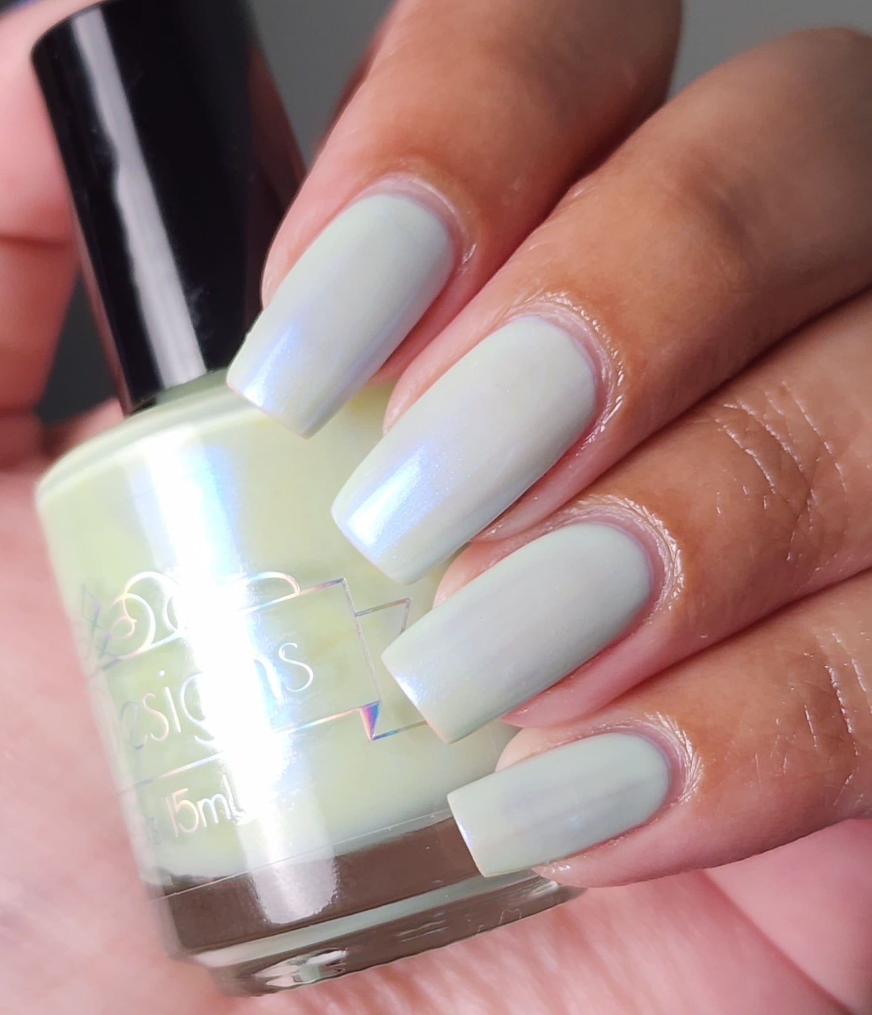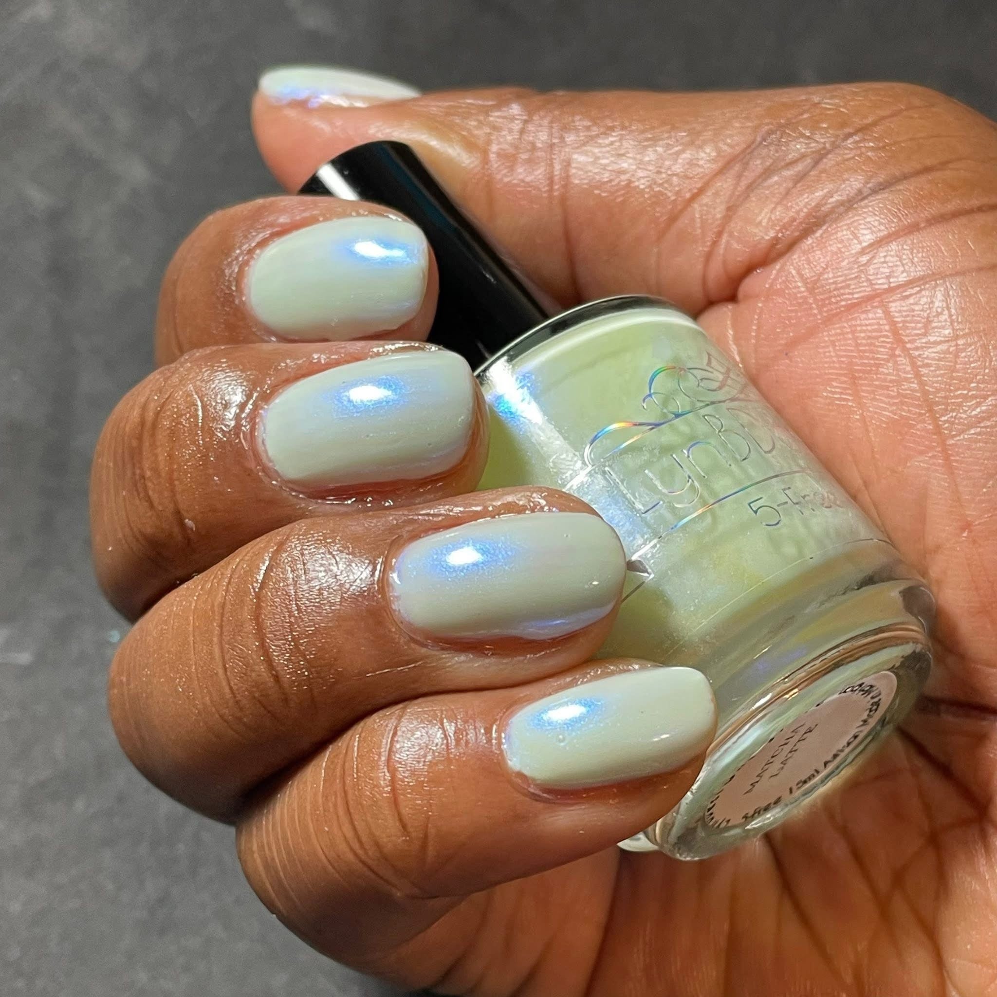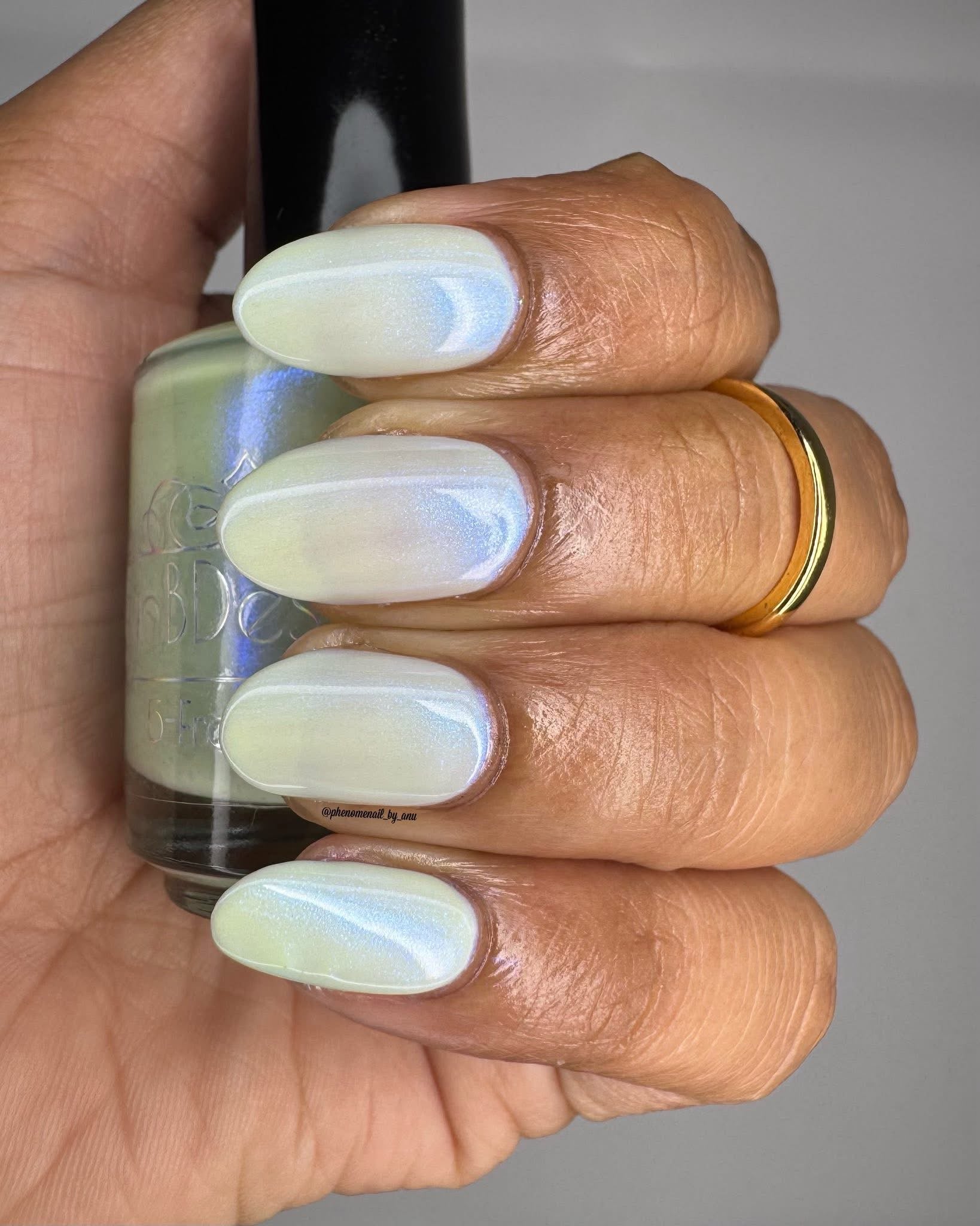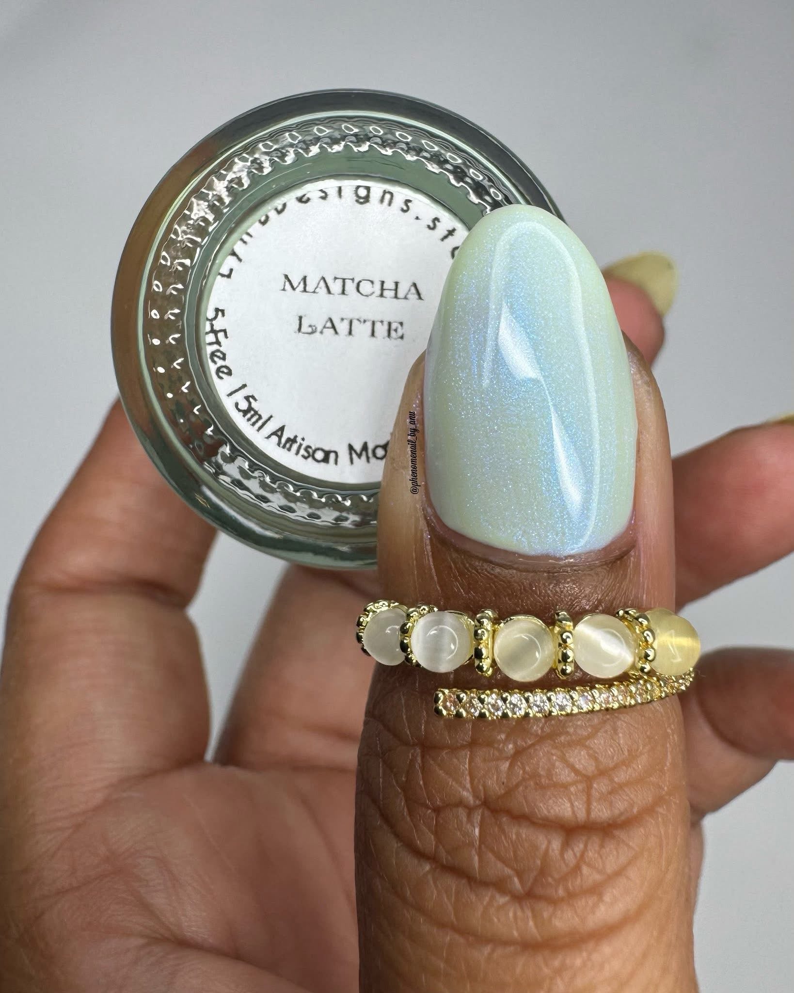 Matcha Latte- creamy pastel green base with blue to indigo shifting shimmer