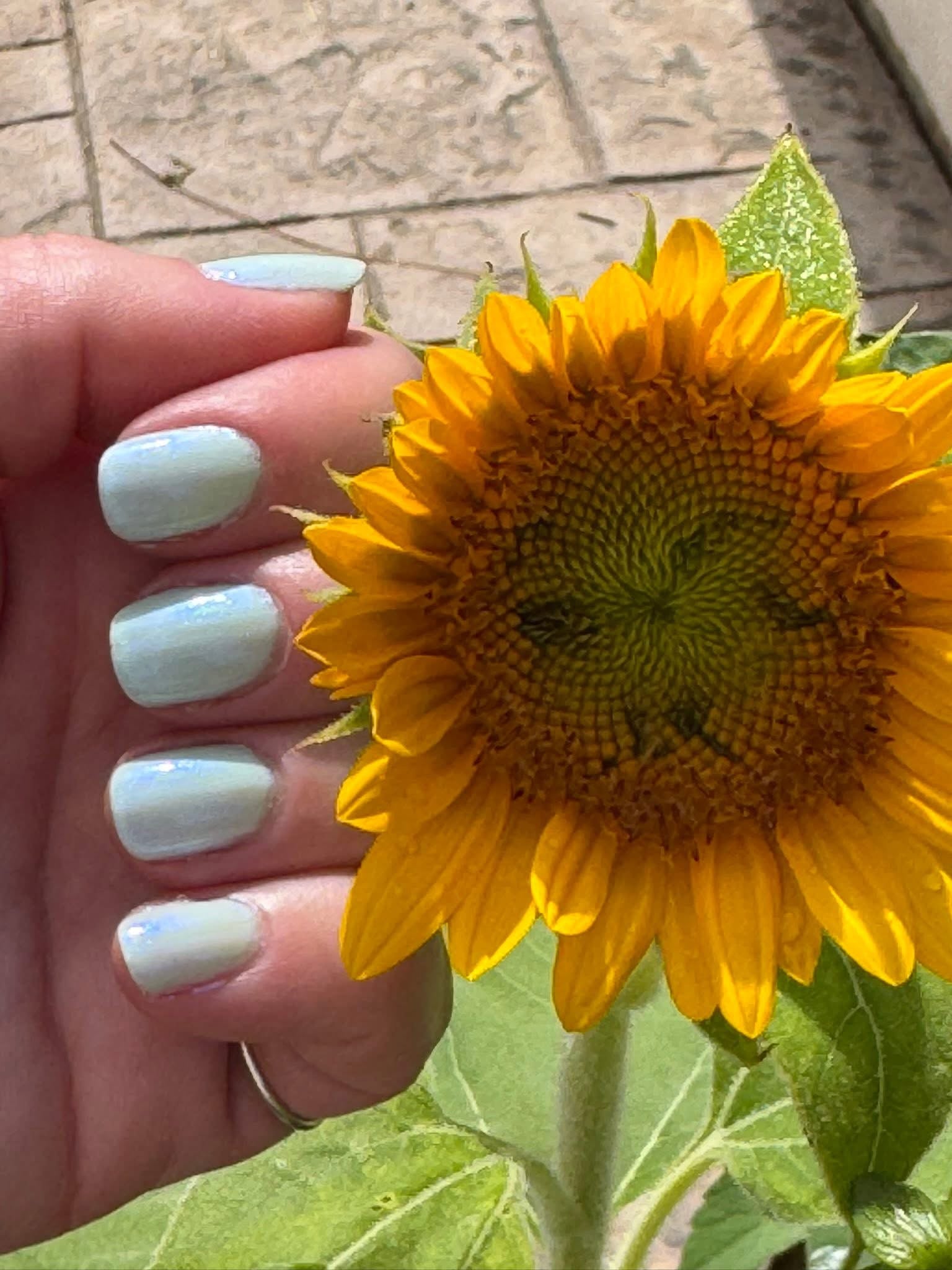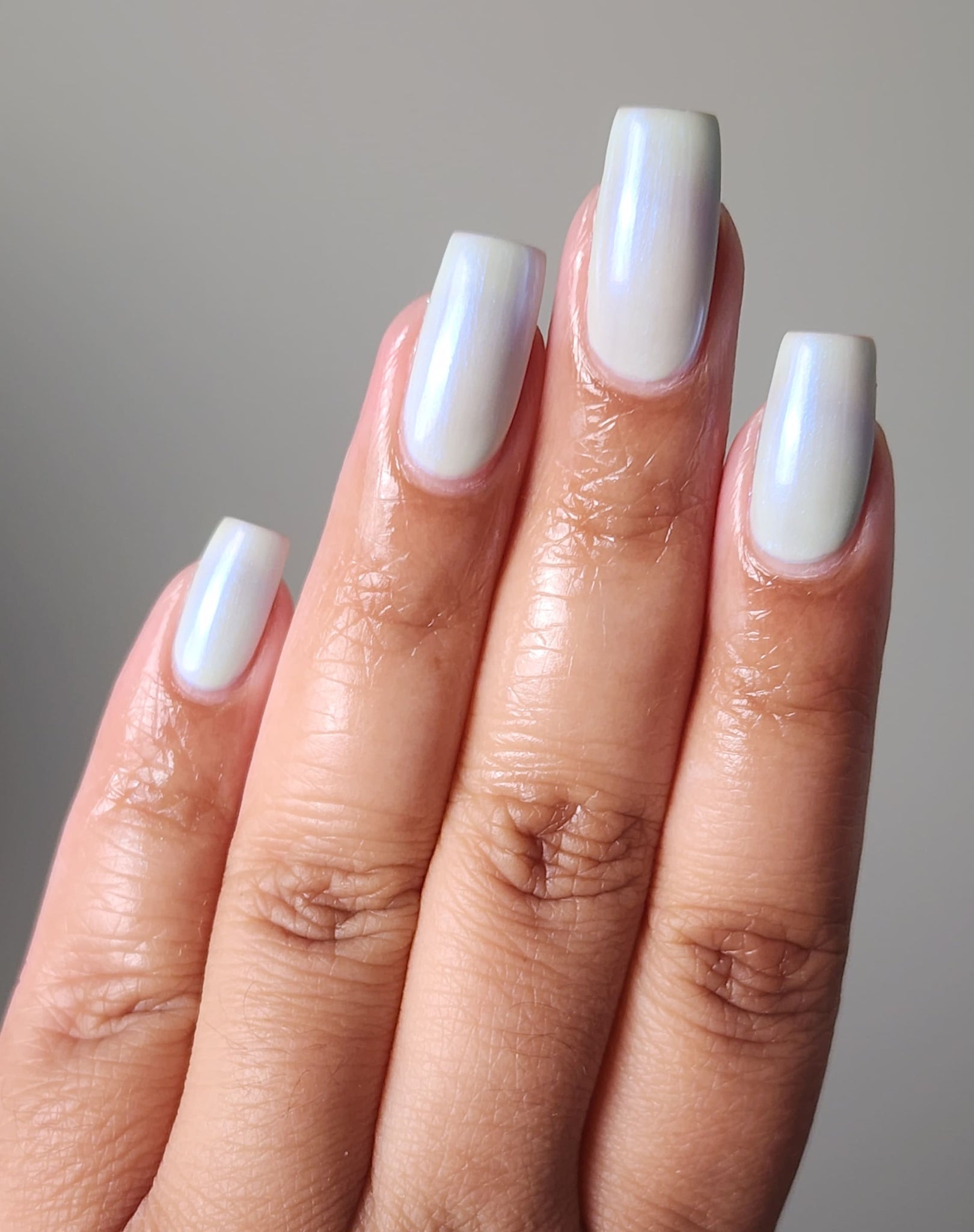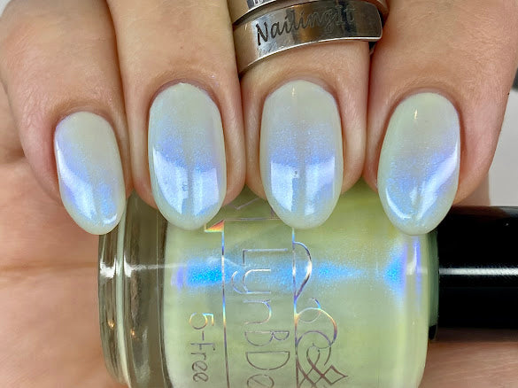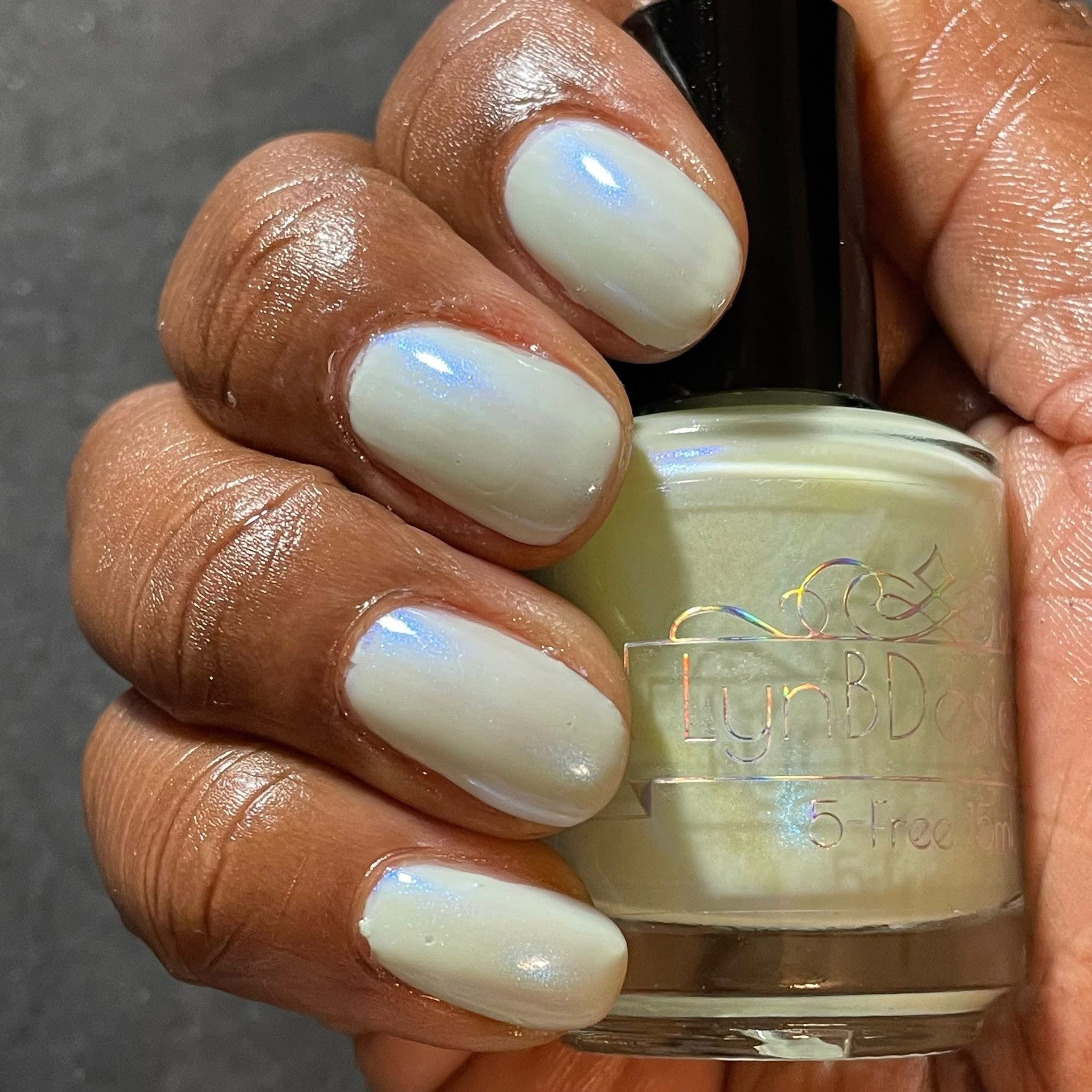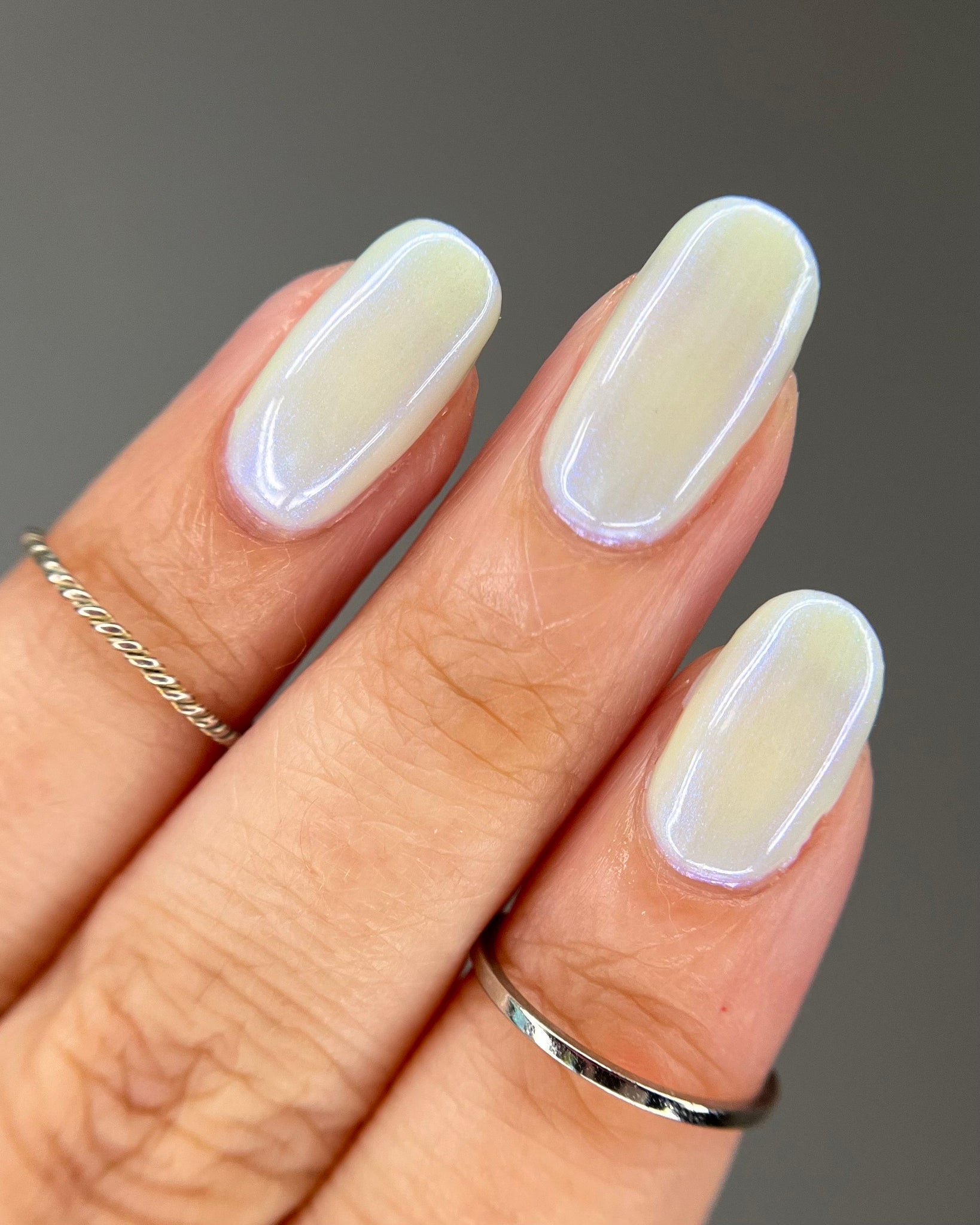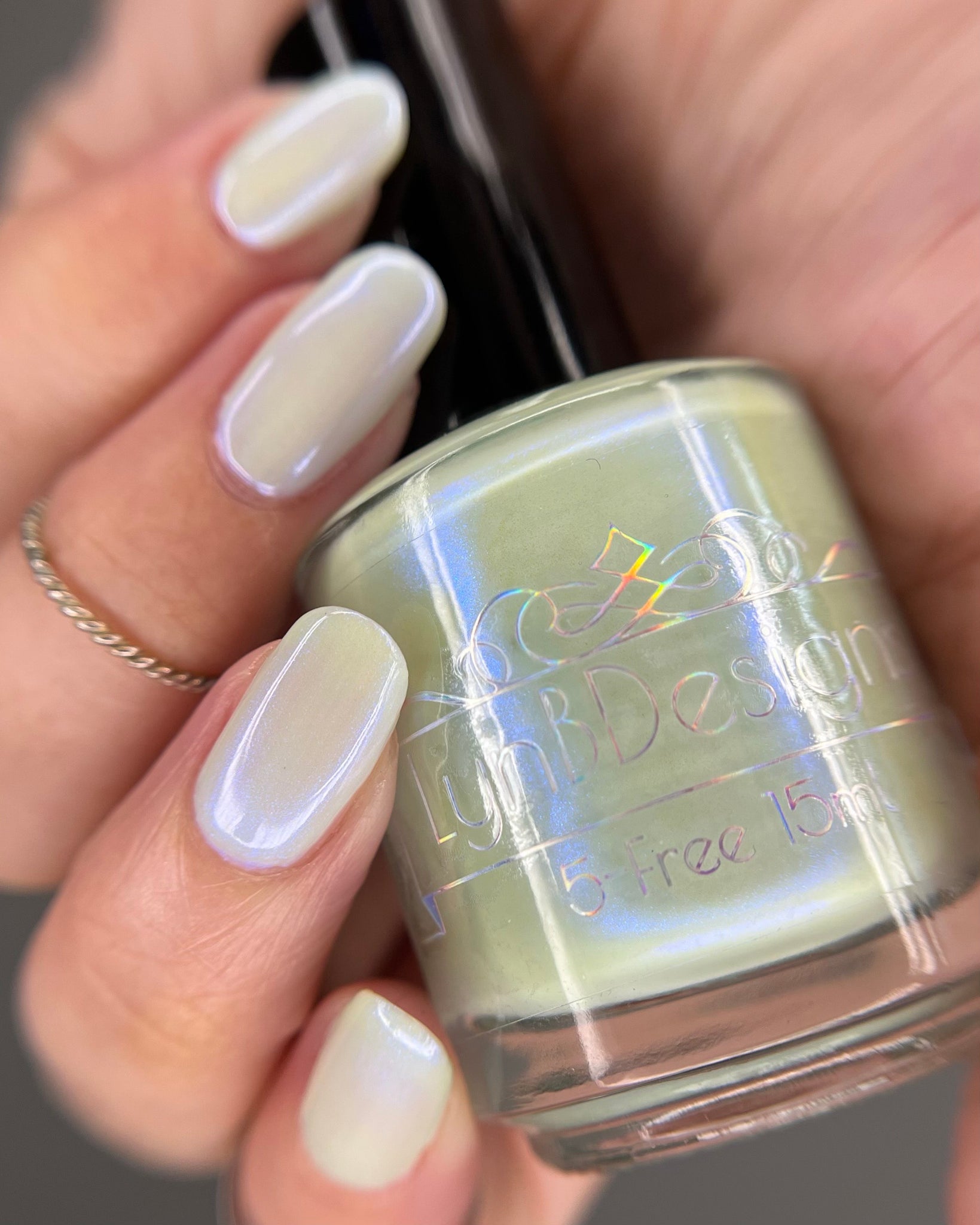 Matcha Latte- creamy pastel green base with blue to indigo shifting shimmer