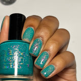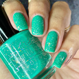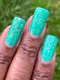 Let’s Bounce- teal neon jelly filled with red to orange for to yellow shifting flakies and a touch of holo sparkle