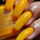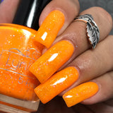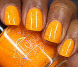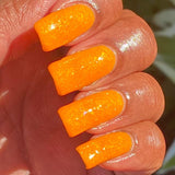 Totally Buggin- an orange yellow neon jelly base filled with red to orange to yellow shifting flakies and a touch of holo sparkle