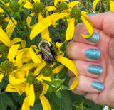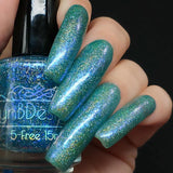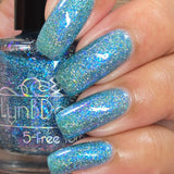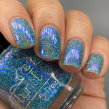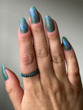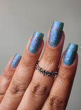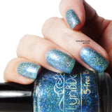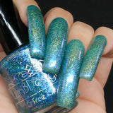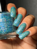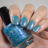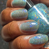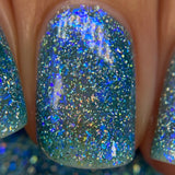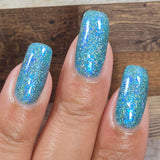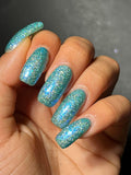 Eau De Humanity- buildable turquoise base with loads of blue to violet shifting flakies and holo flakies