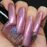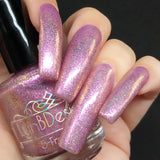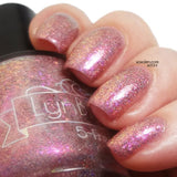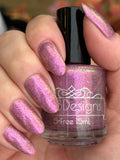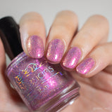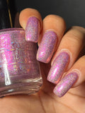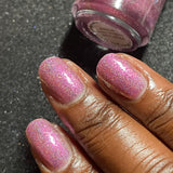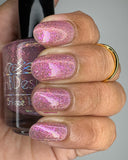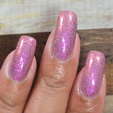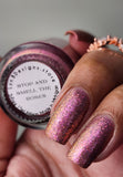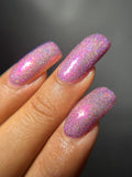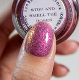Stop and Smell the Roses- peachy pink base with pink to orange to gold shifting micro flakies and holo chunky holo