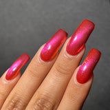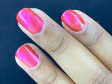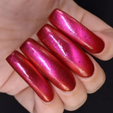Citrine You and Me- warm red base with pink to orange shifting magnetic pull and copper to yellow shifting flakies