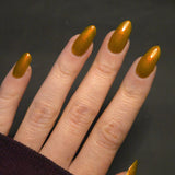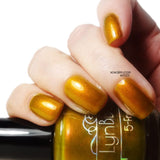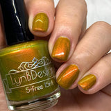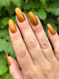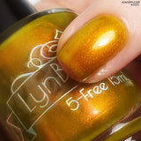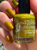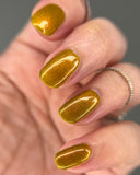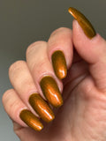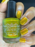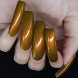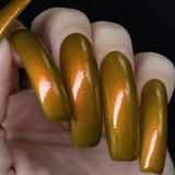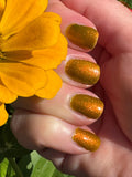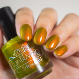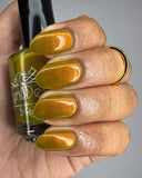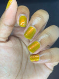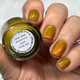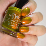 It’s a Pyrite’s Life for Me- grungy yellow base filled with red to orange to green shifting shimmer