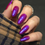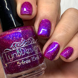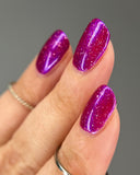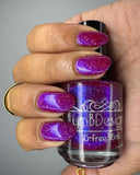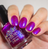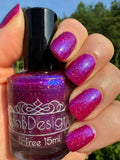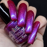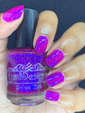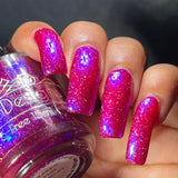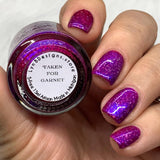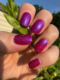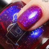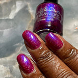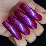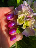 Taken for Garnet- pink leaning burgundy base with electric blue to violet shifting shimmer and added holo sparkle